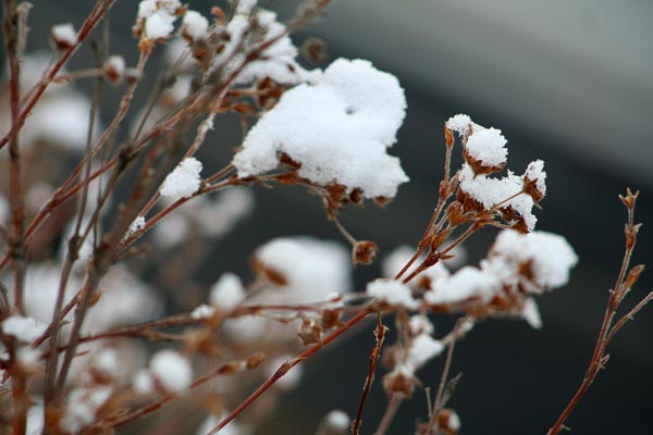 Snö På detta foto kan associeras till: fruset, vinter, snö, buske, växt, blomma.