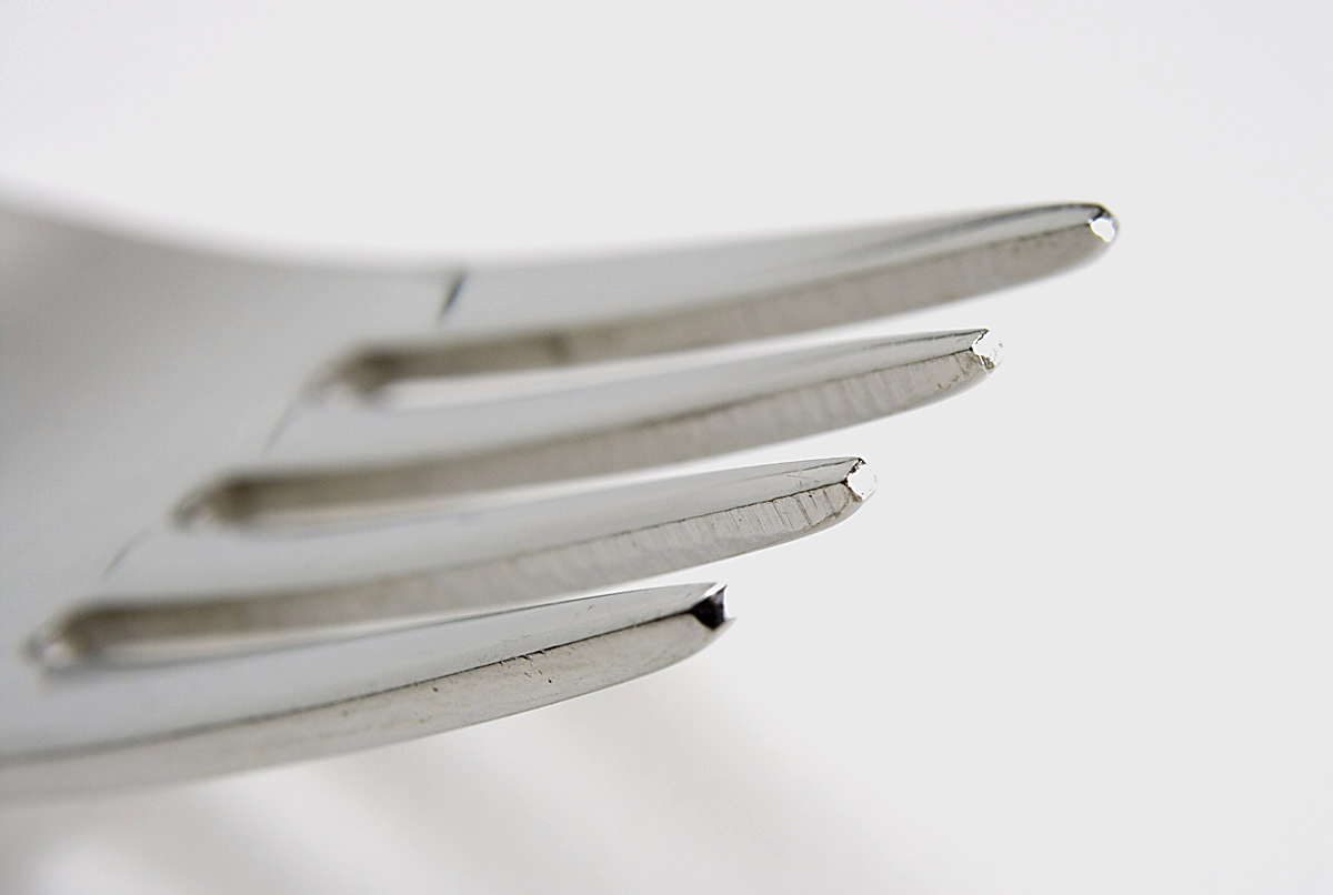 En närbild på en metallgaffel.Sökord: bestickmetallgaffeldukabordmåltidverktygmattillbehör Storleken på denna bild är 1200 x 806 pixlar. Detta ger en bild på 10 x 7 cm med 300 dpi. Bildens id är 3010, anges vid beställning.
