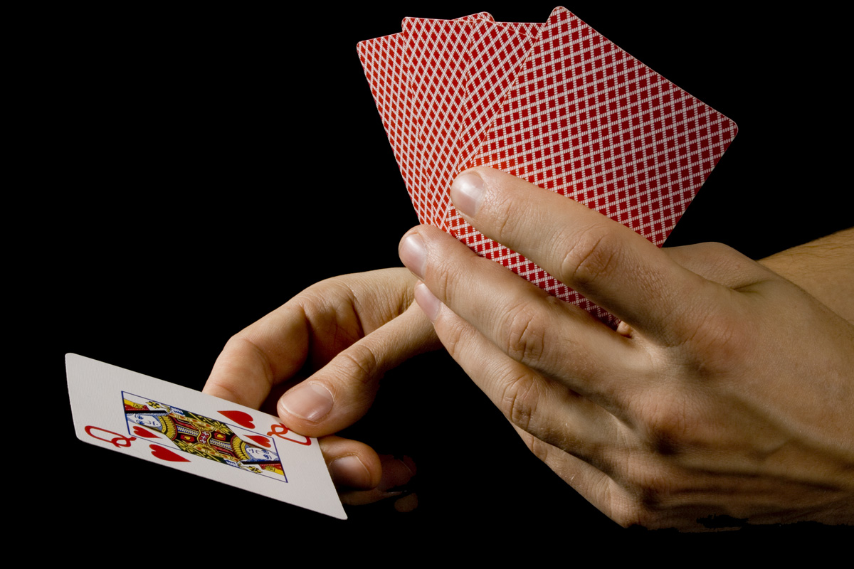 Någon lägger ett spelkort, hjärter dam.Sökord: spelakortspelkorthandpokerhändermänniskamänniskor Storleken på denna bild är 1200 x 800 pixlar. Detta ger en bild på 10 x 7 cm med 300 dpi. Bildens id är 3075, anges vid beställning.