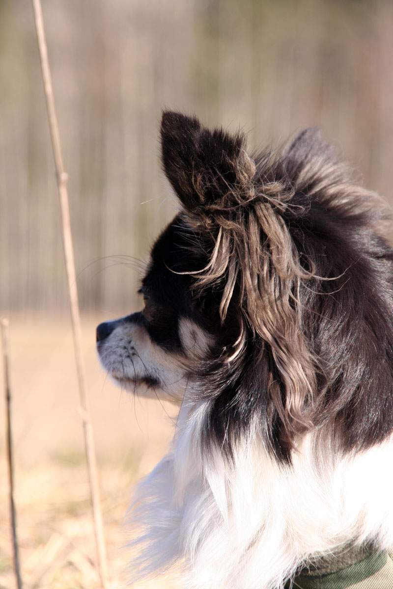 en liten chihuahua som sitter å spanar På detta foto kan associeras till: chihuahua, spana, hund, små, öron, päls.