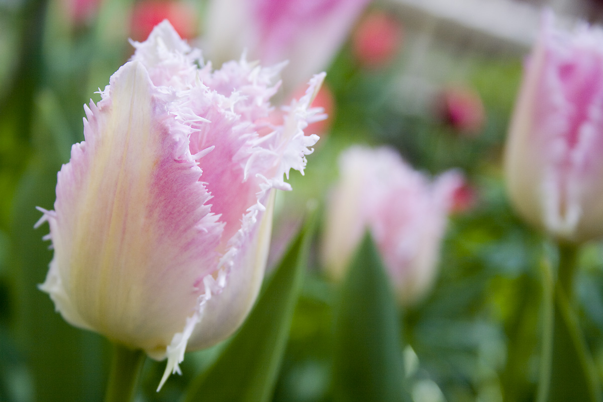 ljusrosa och vit franstulpan. På detta foto kan associeras till: tulpan, tulpaner, blomma, blommor, franstulpan, rosa, vit.