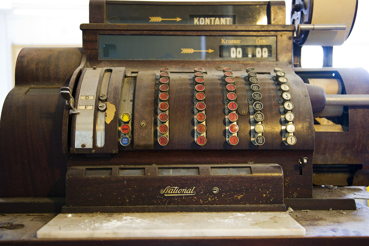 En kassaapparat från en gammal affär.Sökord: kassapparatkassaknapparbetalaaffär Storleken på denna bild är 1200 x 800 pixlar. Detta ger en bild på 10 x 7 cm med 300 dpi. Bildens id är 3504, anges vid beställning.
