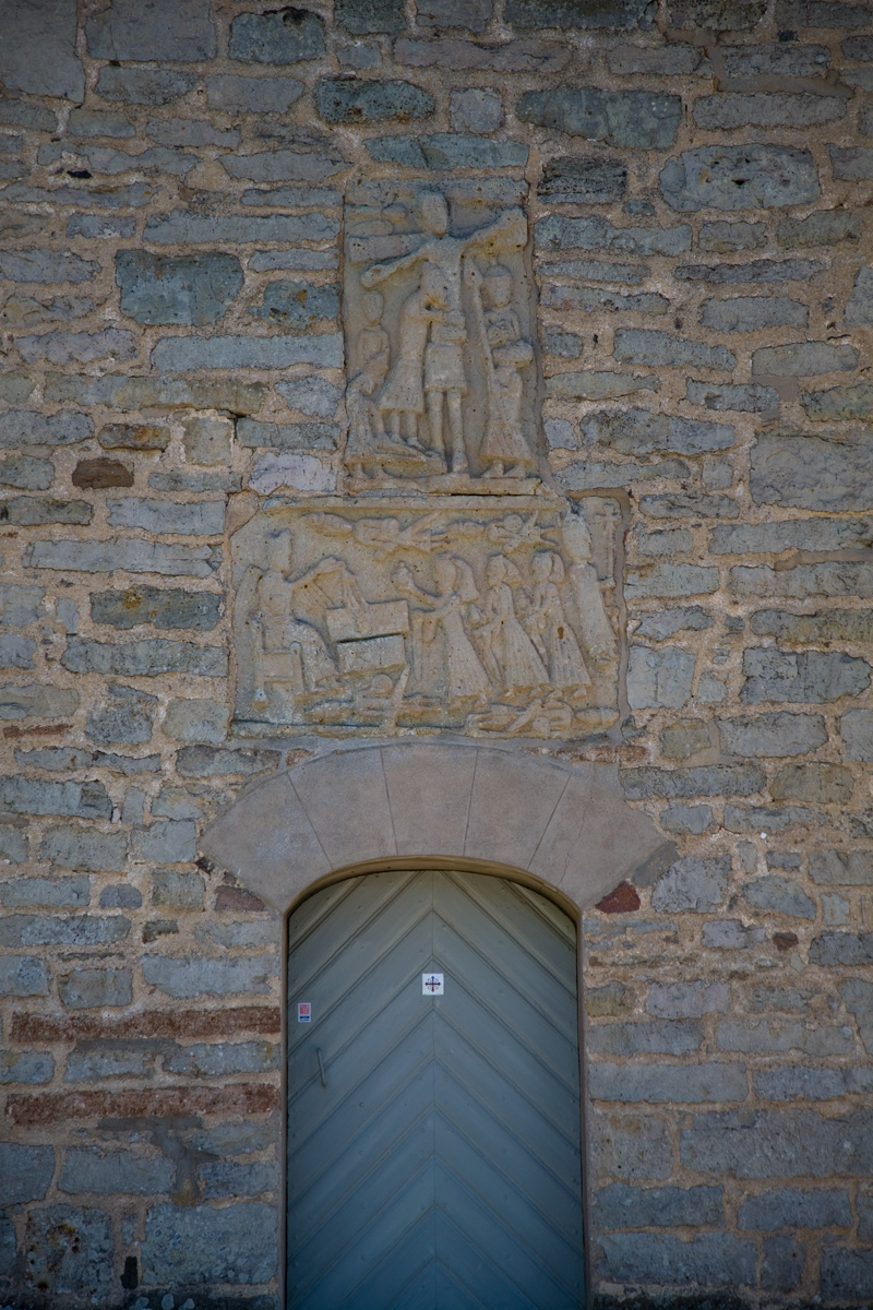 Vackra stenreliefer på Forshems kyrka i Västa götaland. På detta foto kan associeras till: forshem, forshems, kyrka, tempelriddaren, arn, magnusson, guillou, västra, götaland, sten, huggare, stenreliefer, kyrkport.