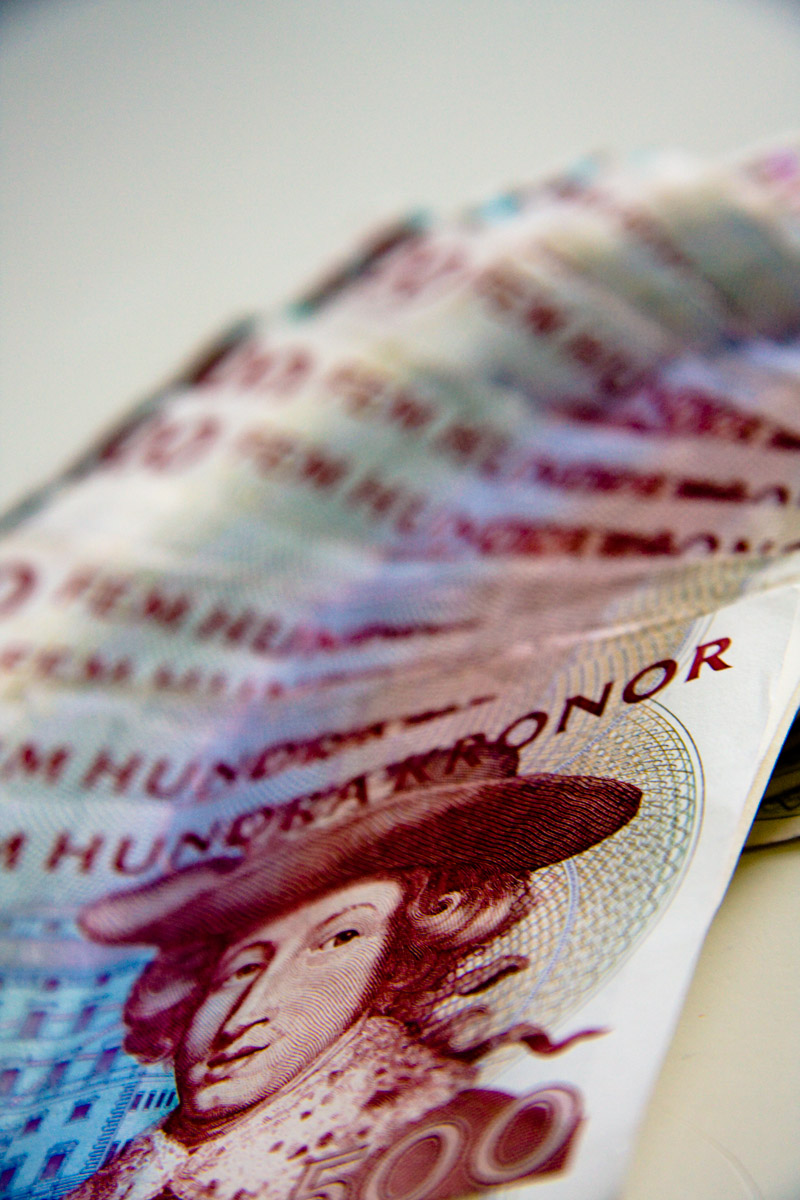 En stor bunt med sedlar. Femhundrakronorsedlar. På detta foto kan associeras till: pengar, 500, femhundra, kronor, lappar, sedlar, bunt.