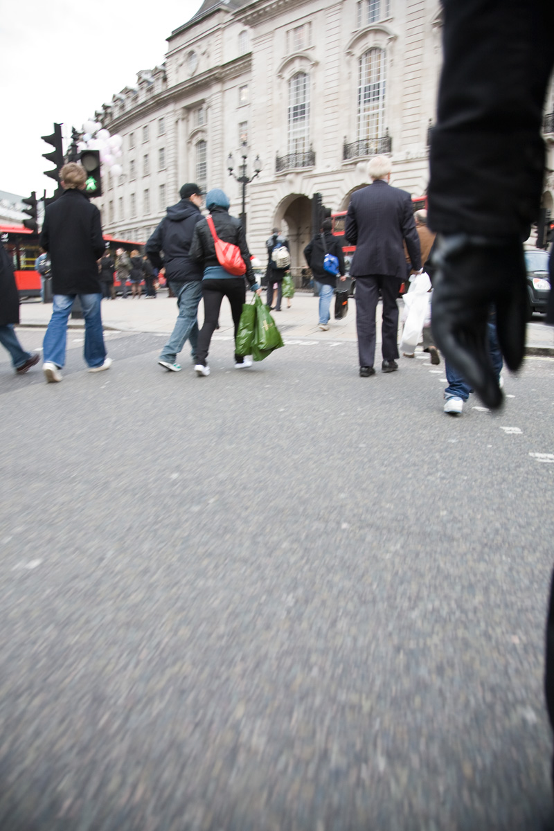 Folk går över en gata i London, England. På detta foto kan associeras till: folk, människor, gata, väg, övergångsställe, england, london.