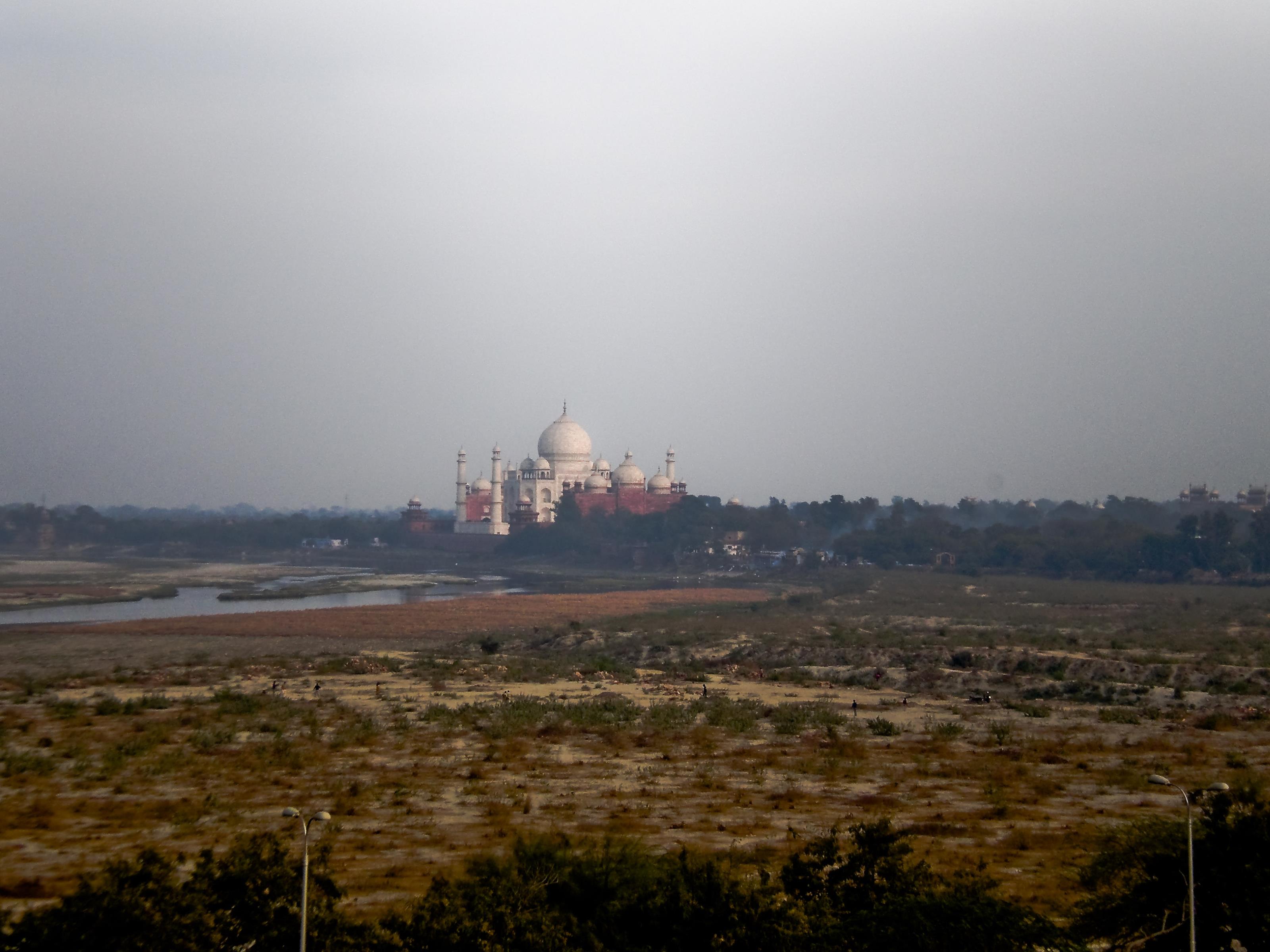 Mitt i tomheten sticker Taj Mahal upp som en oas. Sett från Agra fort. På detta foto kan associeras till: indien, asien, taj, mahal.