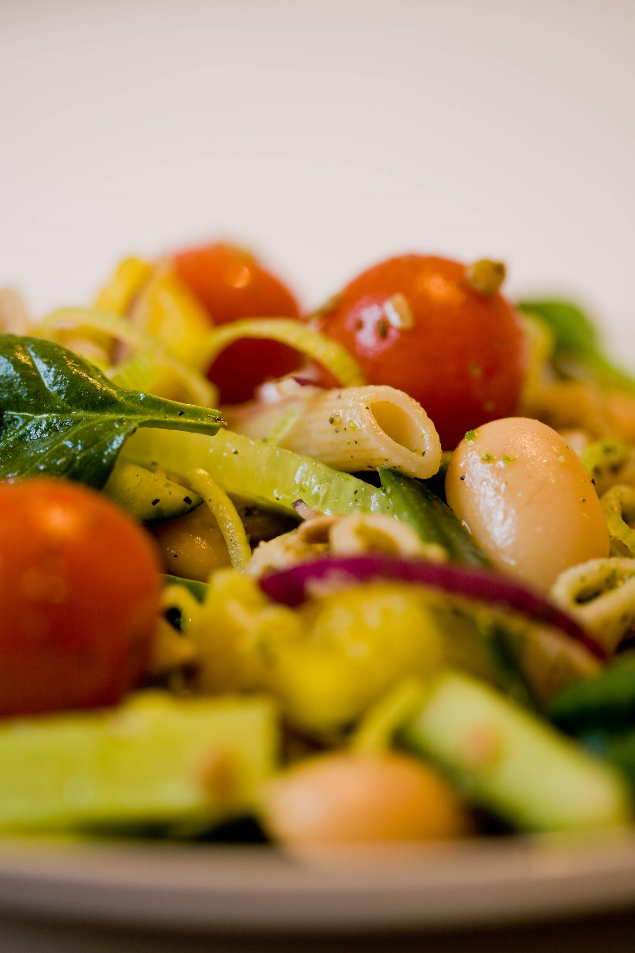 Nyttig pastasallad med bl.a. tomat, lök, gurka, babyspenat, vitabönor och solrosfrön.Sökord: pastasalladsalladnyttigtmathälsosamtgottmaträtter Storleken på denna bild är 2133 x 3200 pixlar. Denna bild har mycket hög upplösning. Detta ger en bild på 18 x 27 cm med 300 dpi. Bildens id är 4220, anges vid beställning.