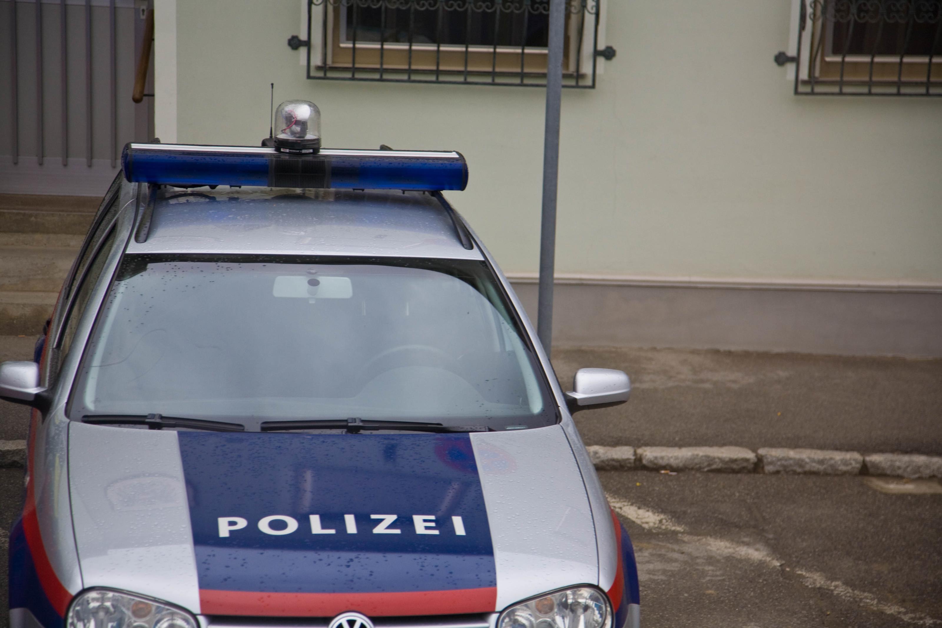 En parkerad polisbil någonstans i Österrike. På detta foto kan associeras till: polis, polisbil, österrike, polizei, siren, blåljus.