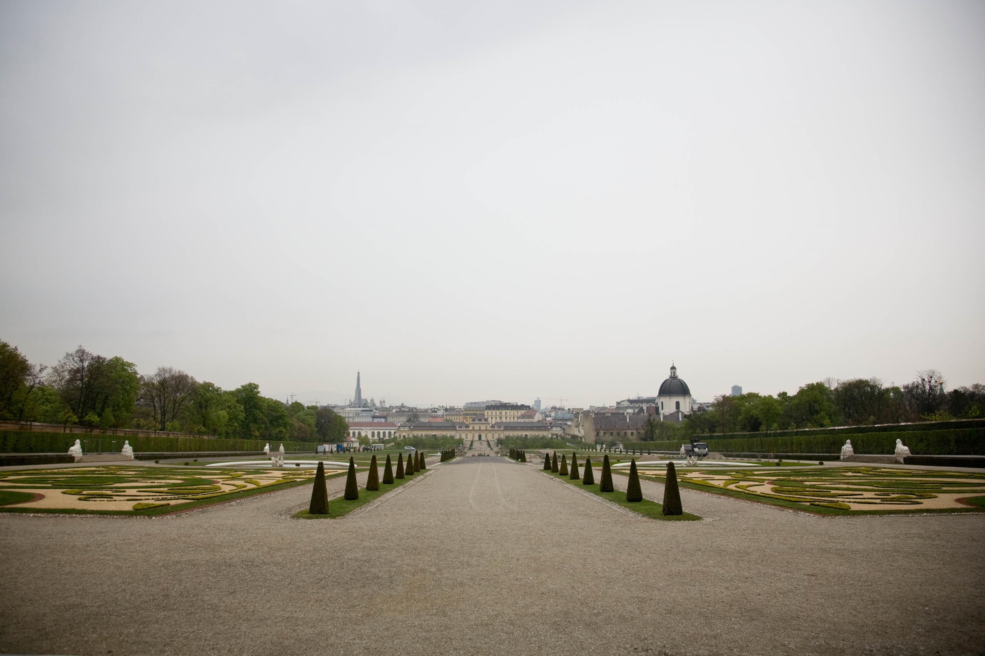 Utsikt över trädgården vid nedre Belvedere i Wien, Österrike. På detta foto kan associeras till: trädgård, slott, slottet, belvedere, österrike, wien, byggnader, växter.