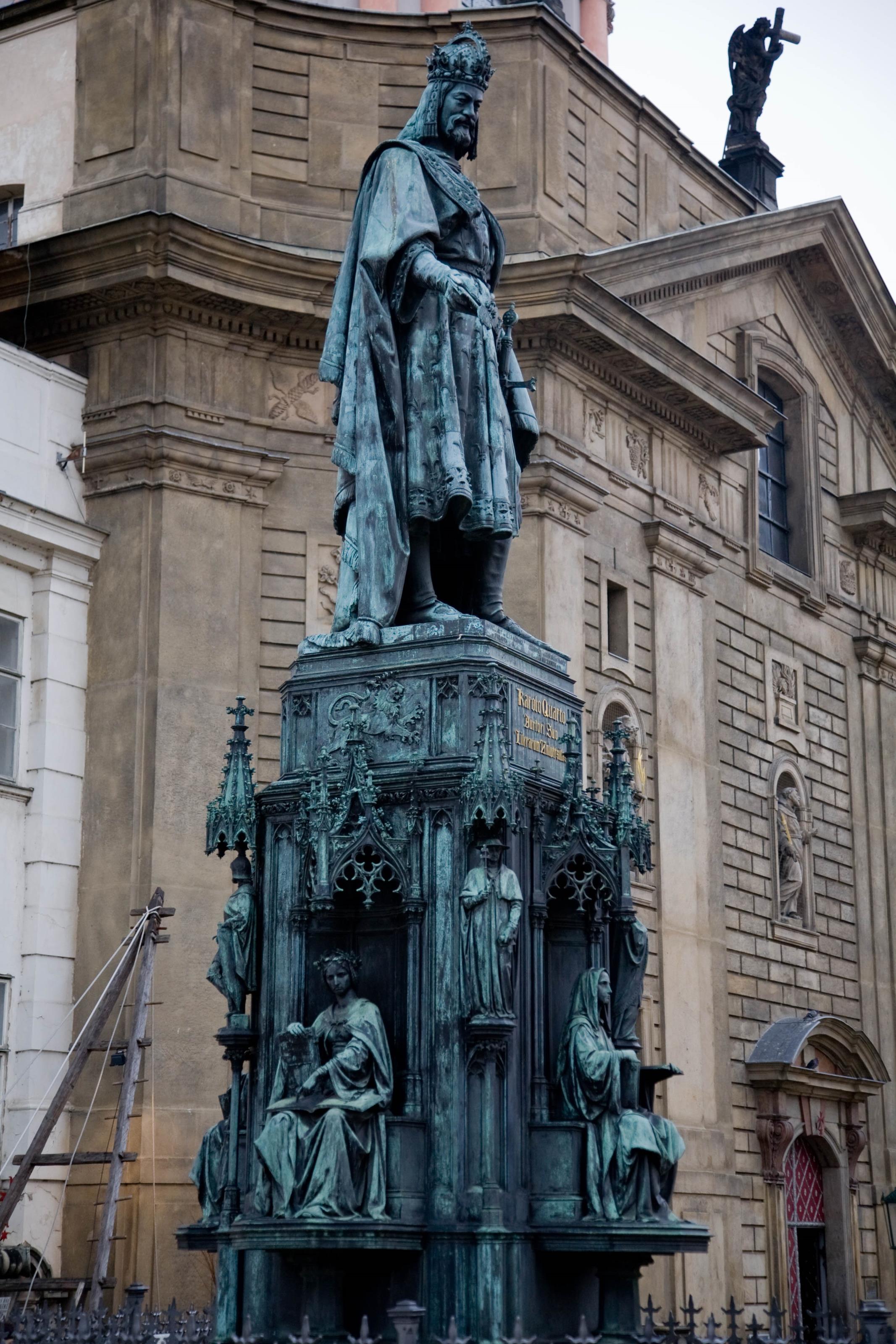 Statyn över Karl IV in till Karlsbon i Prag, Tjeckien.