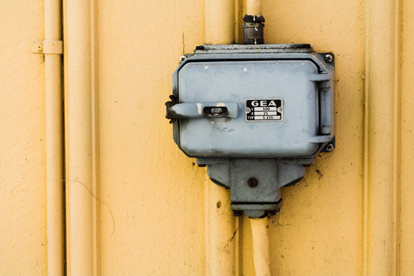 En eldosa på gult hus. På detta foto kan associeras till: eldosa, el, dosa, elräknare, electricity, , box, tin.