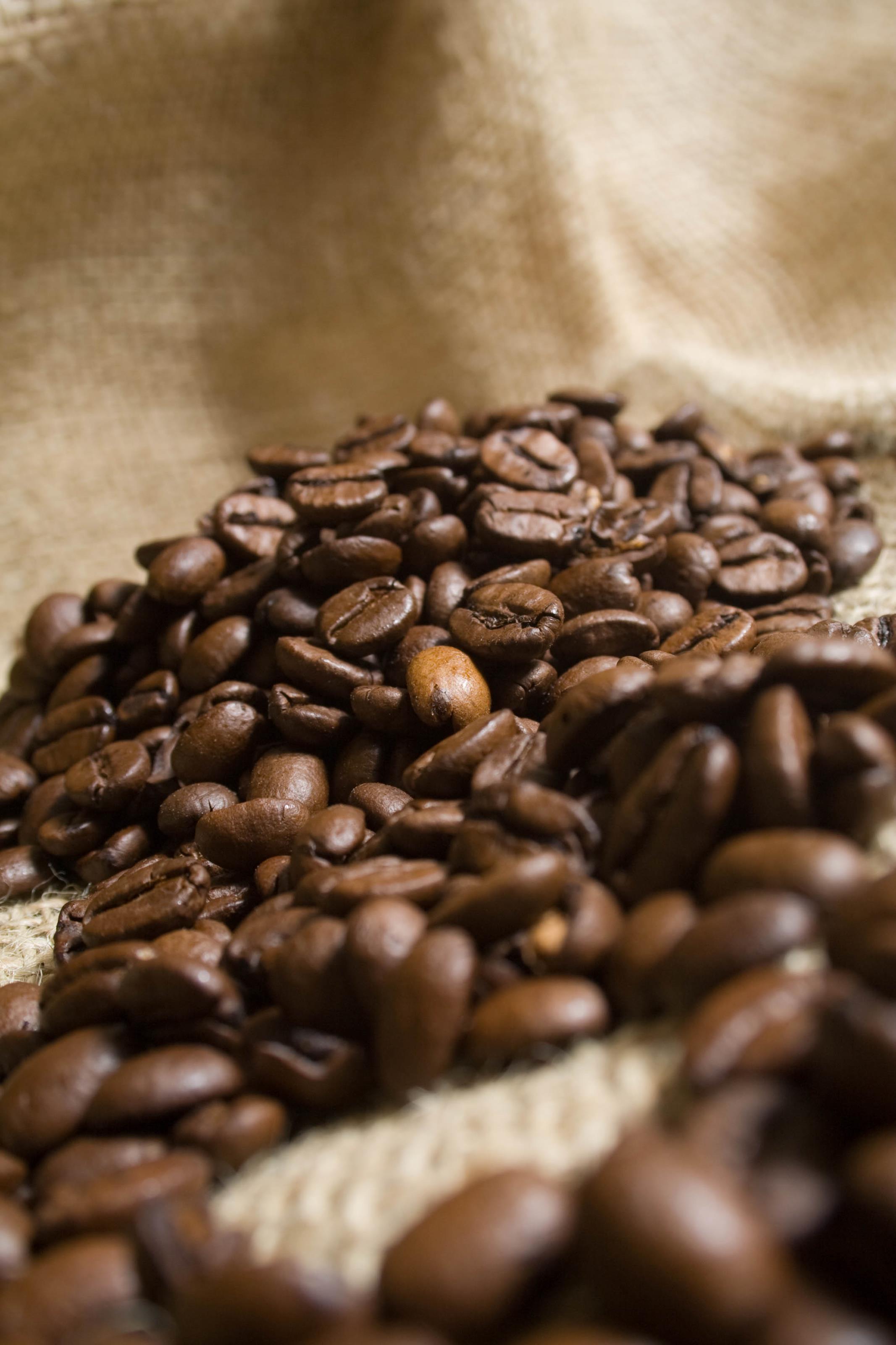 Rostade hela kaffebönor, grunden till en god kopp kaffe eller en kaffedrink. På detta foto kan associeras till: kaffe, bönor, kaffebönor, kaffeböna, rostad, rostade, brun, mörk, dryck, dricka, mocca, espresso, latte, arabica, koffein, bär.