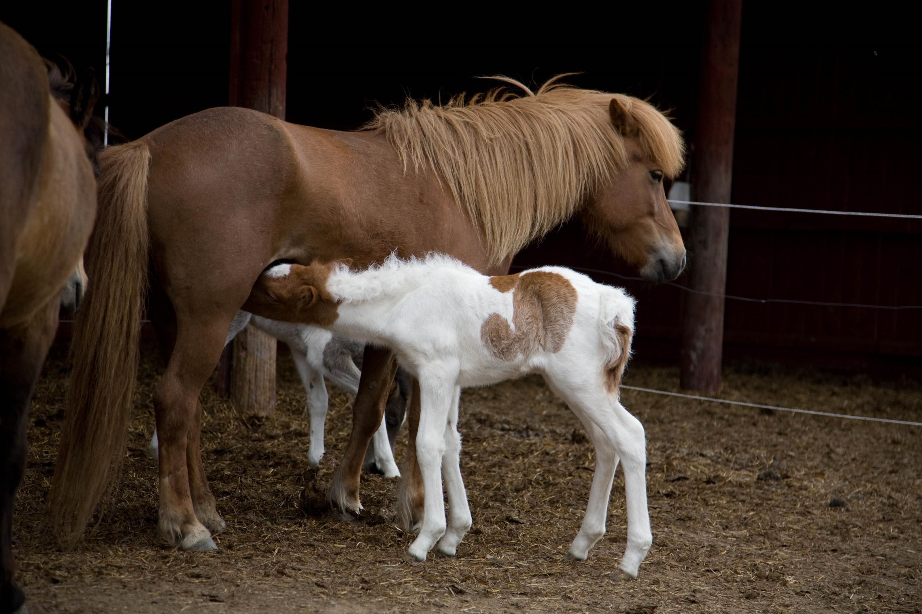 Lösgående hästar, inslandshästar vid ett stall. På detta foto kan associeras till: häst, hästar, inslandshästar, island, tölt, man, hovar, rida, ridsport, djur, däggdjur, riddjur, sport, ridskola, ridskolan, ridning, stall, stallet, föl, sto, märr.