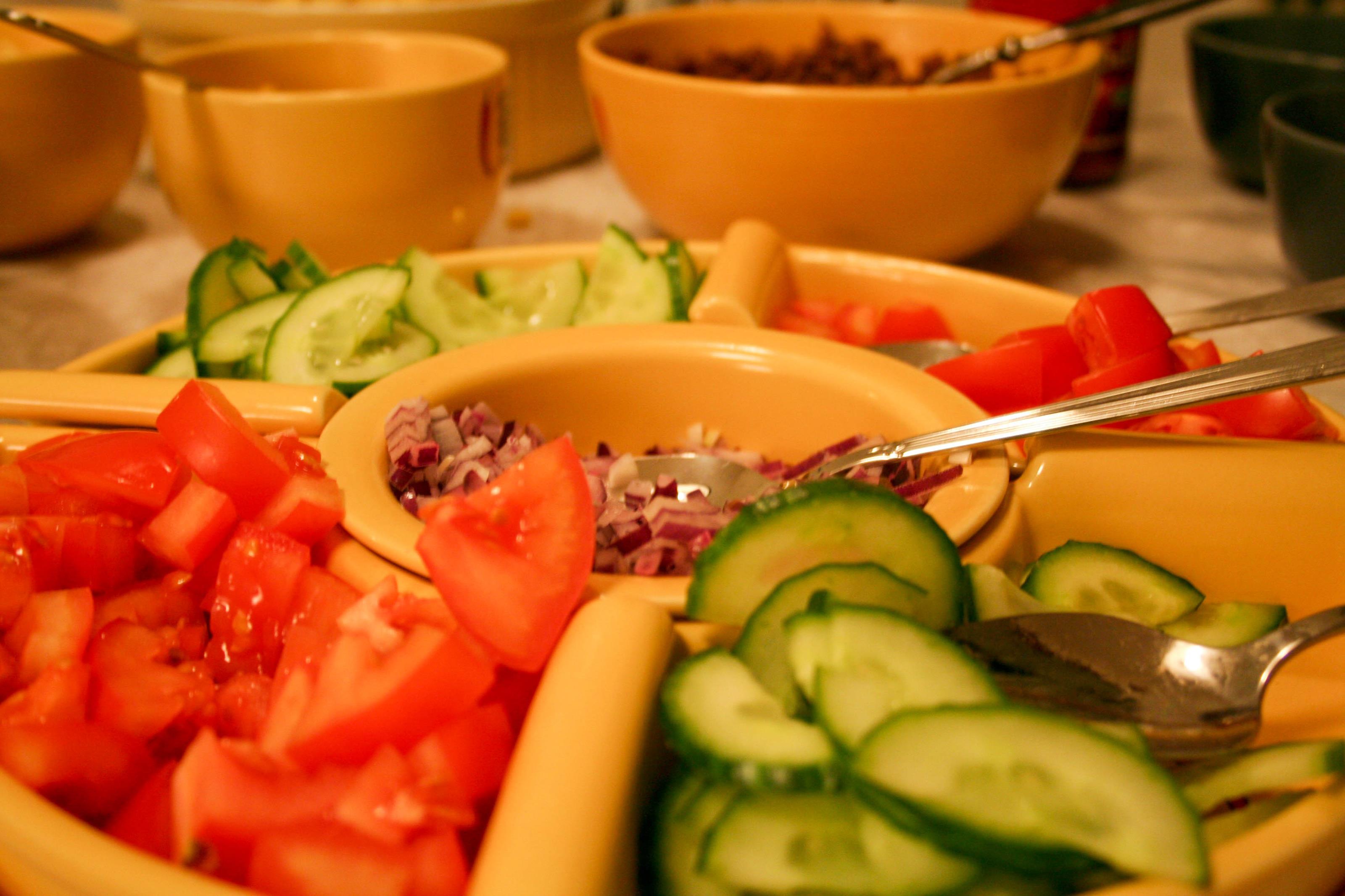 Grönsaker, hackade till tacos. På detta foto kan associeras till: grönsaker, livsmedel, taco, måltid, mat, äta, service.