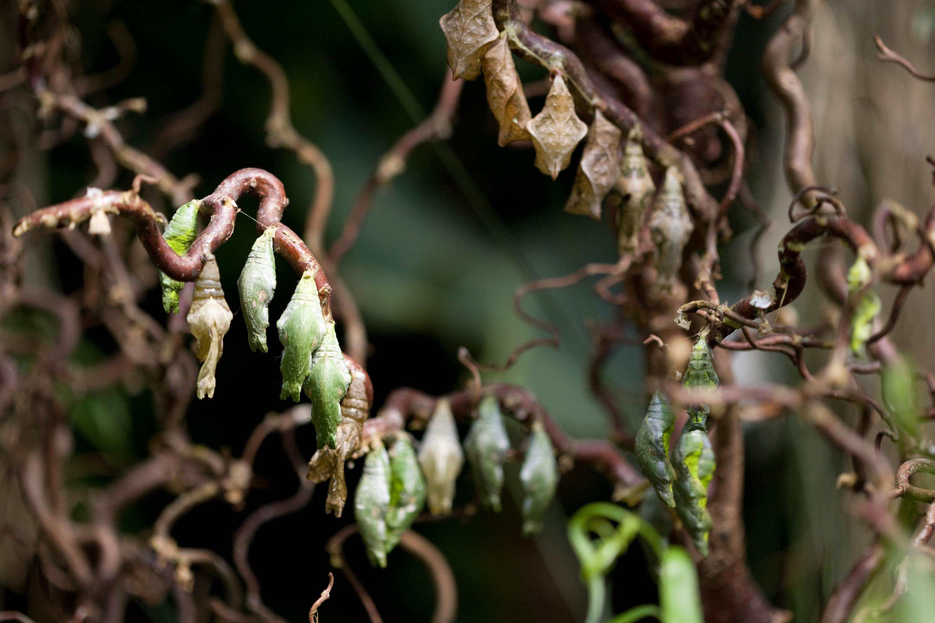 Massor av puppor i ett träd.Sökord: puppafjärilspuppapupporkokongerhagastockholm Storleken på denna bild är 3200 x 2133 pixlar. Denna bild har mycket hög upplösning. Detta ger en bild på 27 x 18 cm med 300 dpi. Bildens id är 5484, anges vid beställning.