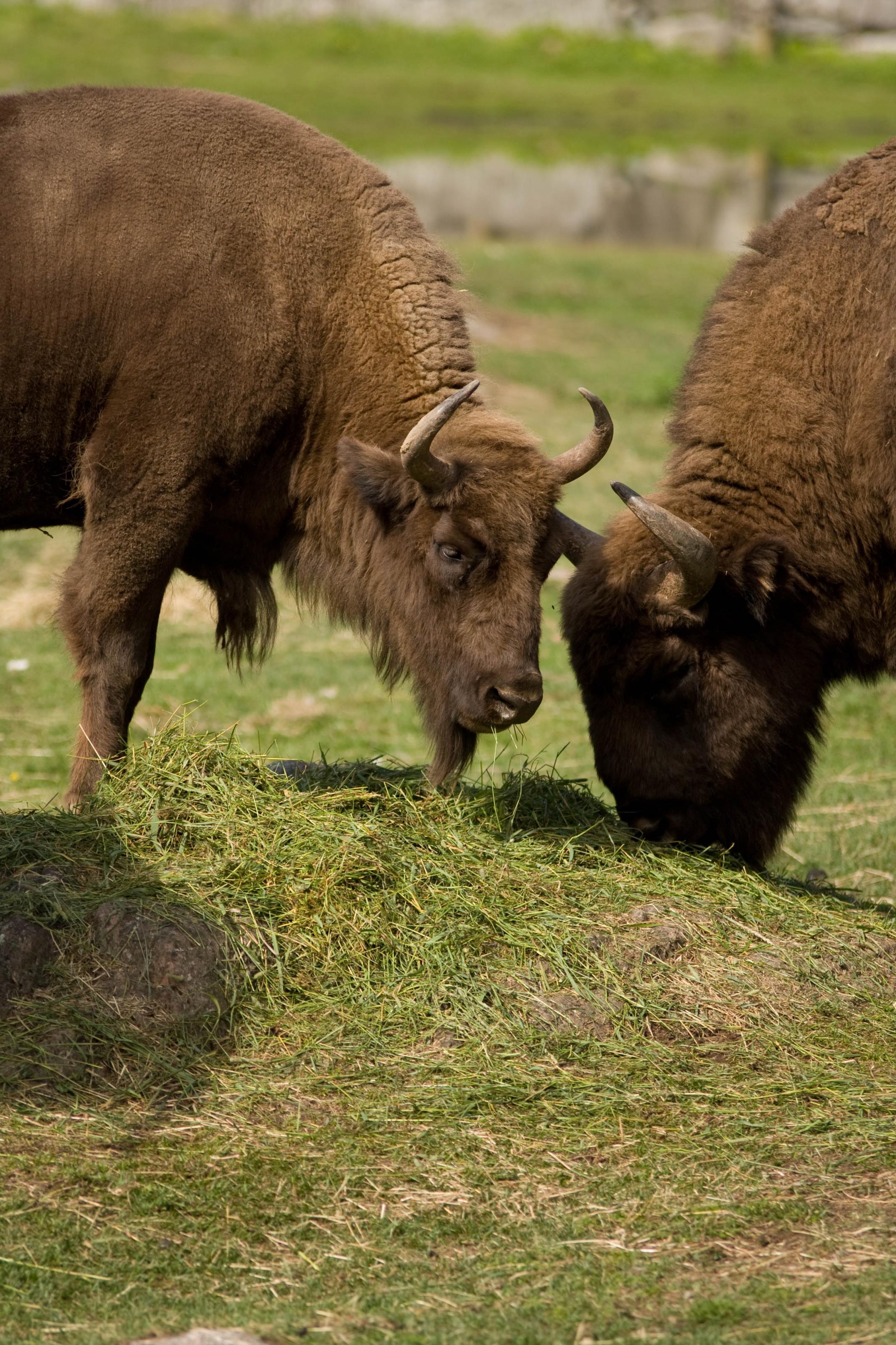 Två visenter står och betarSökord: djurparkdjurkolmården Storleken på denna bild är 2133 x 3200 pixlar. Denna bild har mycket hög upplösning. Detta ger en bild på 18 x 27 cm med 300 dpi. Bildens id är 5609, anges vid beställning.