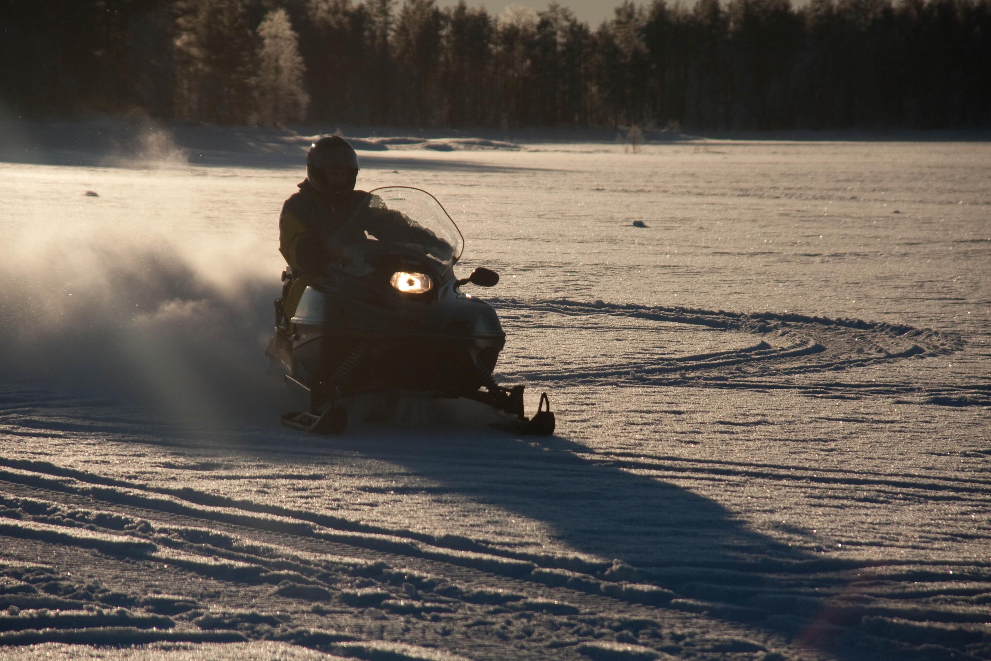 Åker skoter i snön på vintern. På detta foto kan associeras till: dalarna, fordon, kallt, kyla, skoter, snö, snöskoter, vinter, älvdalen, .