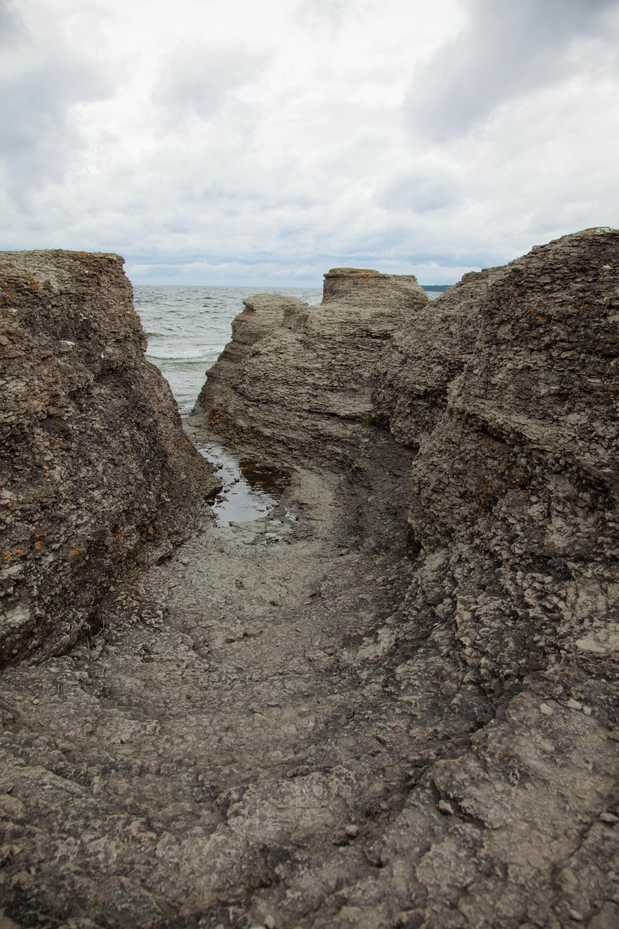 Vy från Byrums raukar, Ölands enda riktiga raukar. På detta foto kan associeras till: berg, byrum, byrums, raukar, hav, havet, raukar, vatten, öland, .