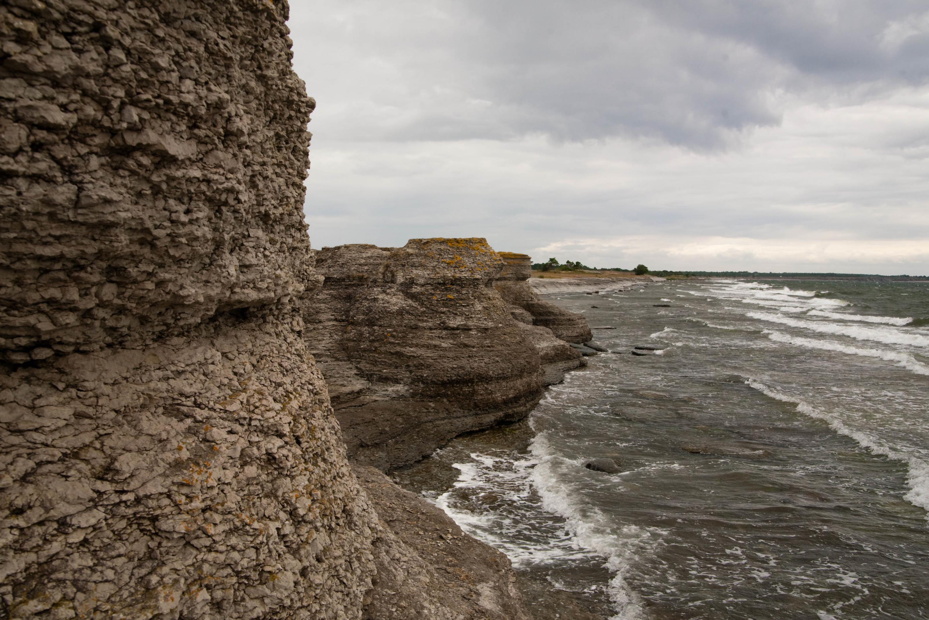 Vy från Byrums raukar, Ölands enda riktiga raukar. På detta foto kan associeras till: berg, byrum, byrums, raukar, hav, havet, raukar, vatten, öland, .
