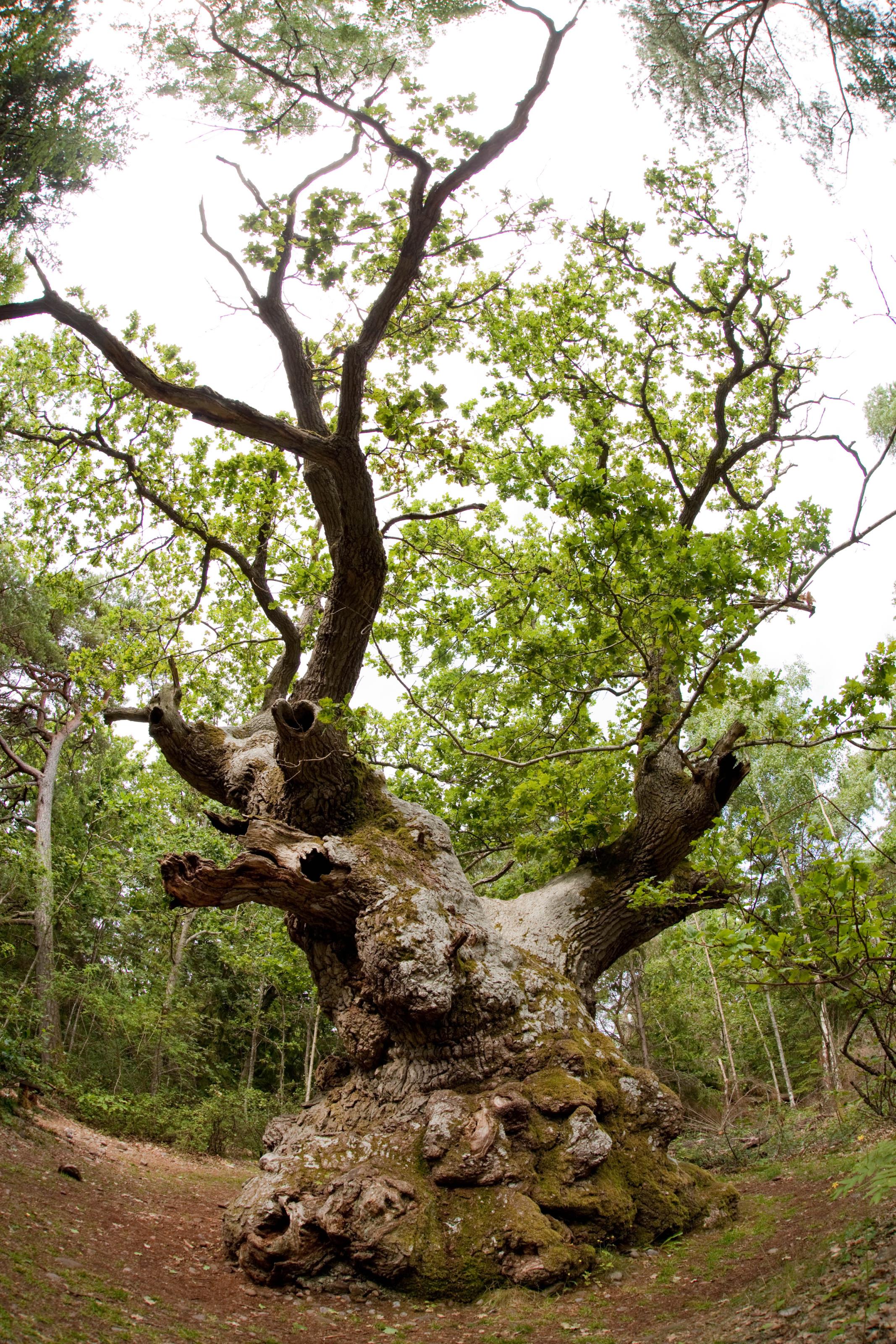 En mycket gammal ek som står i trollskogen på norra Öland. På detta foto kan associeras till: ek, skog, skogen, tallar, trollskogen, träd, öland, .