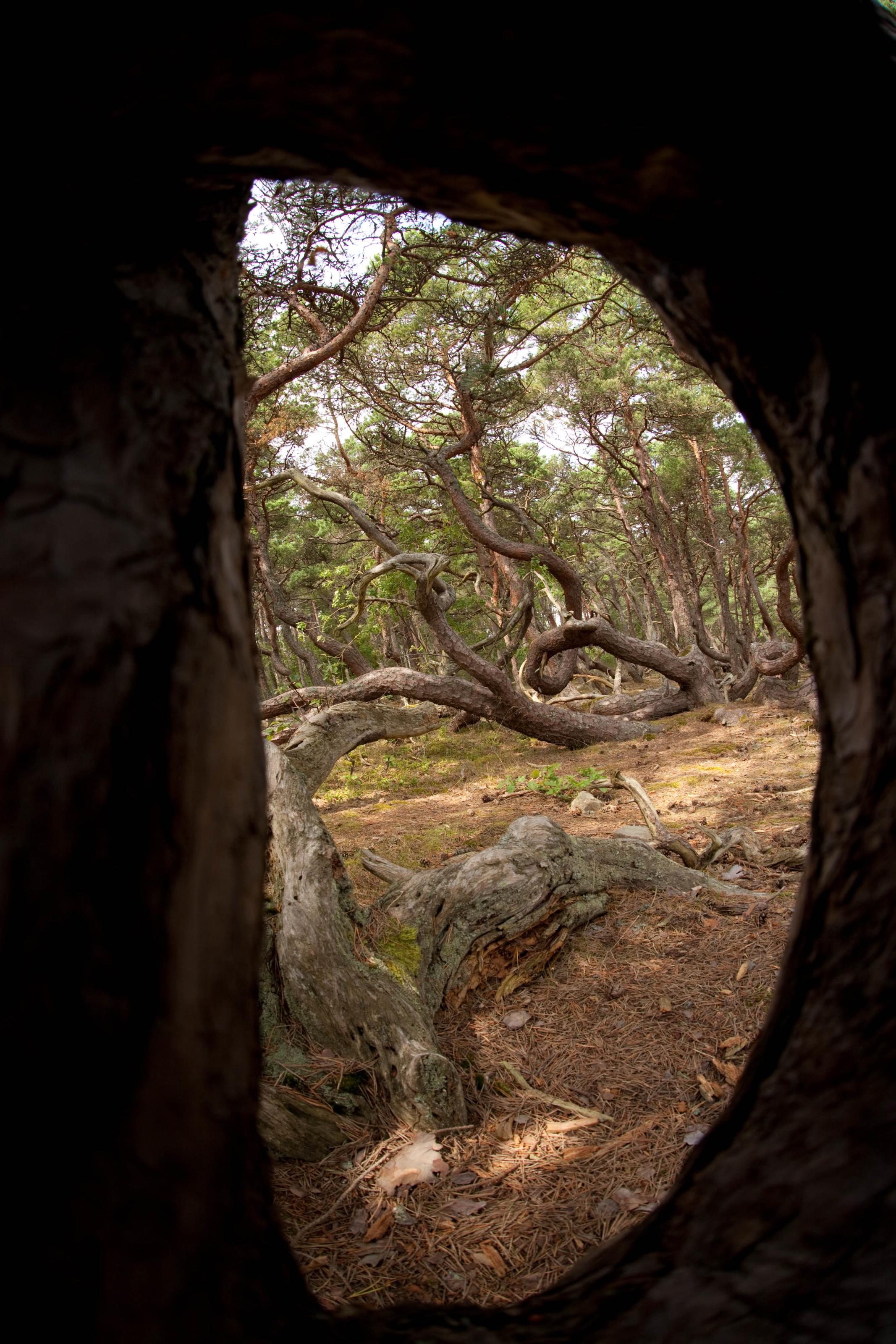 Tallar från Trollskogen på Öland. Vridna träd i konstiga former. På detta foto kan associeras till: skog, skogen, tallar, trollskogen, träd, öland, .