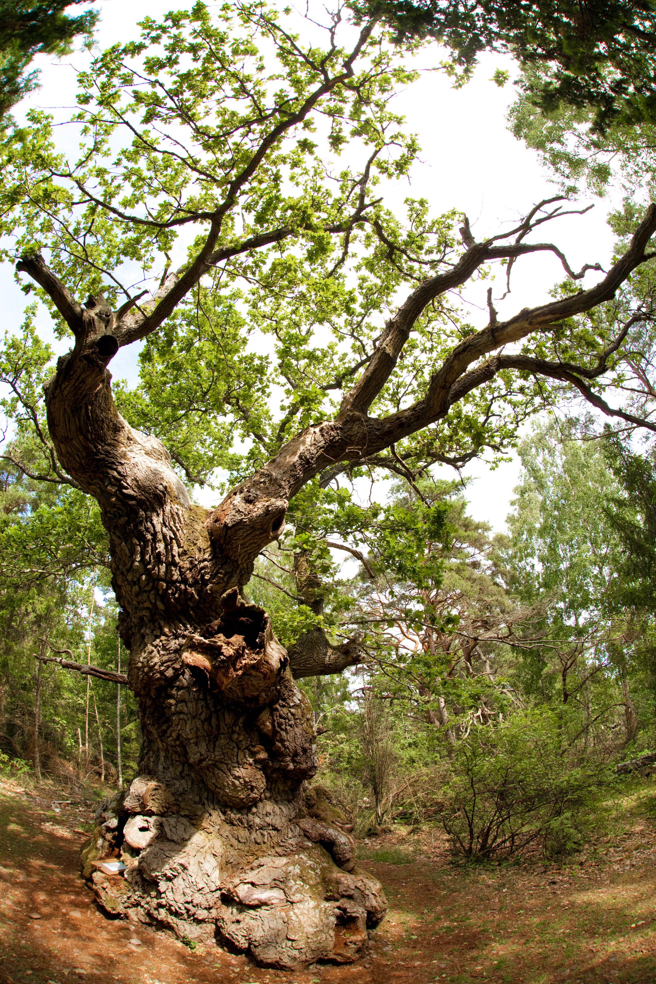 En mycket gammal ek som står i trollskogen på norra Öland. På detta foto kan associeras till: ek, skog, skogen, tallar, trollskogen, träd, öland, .