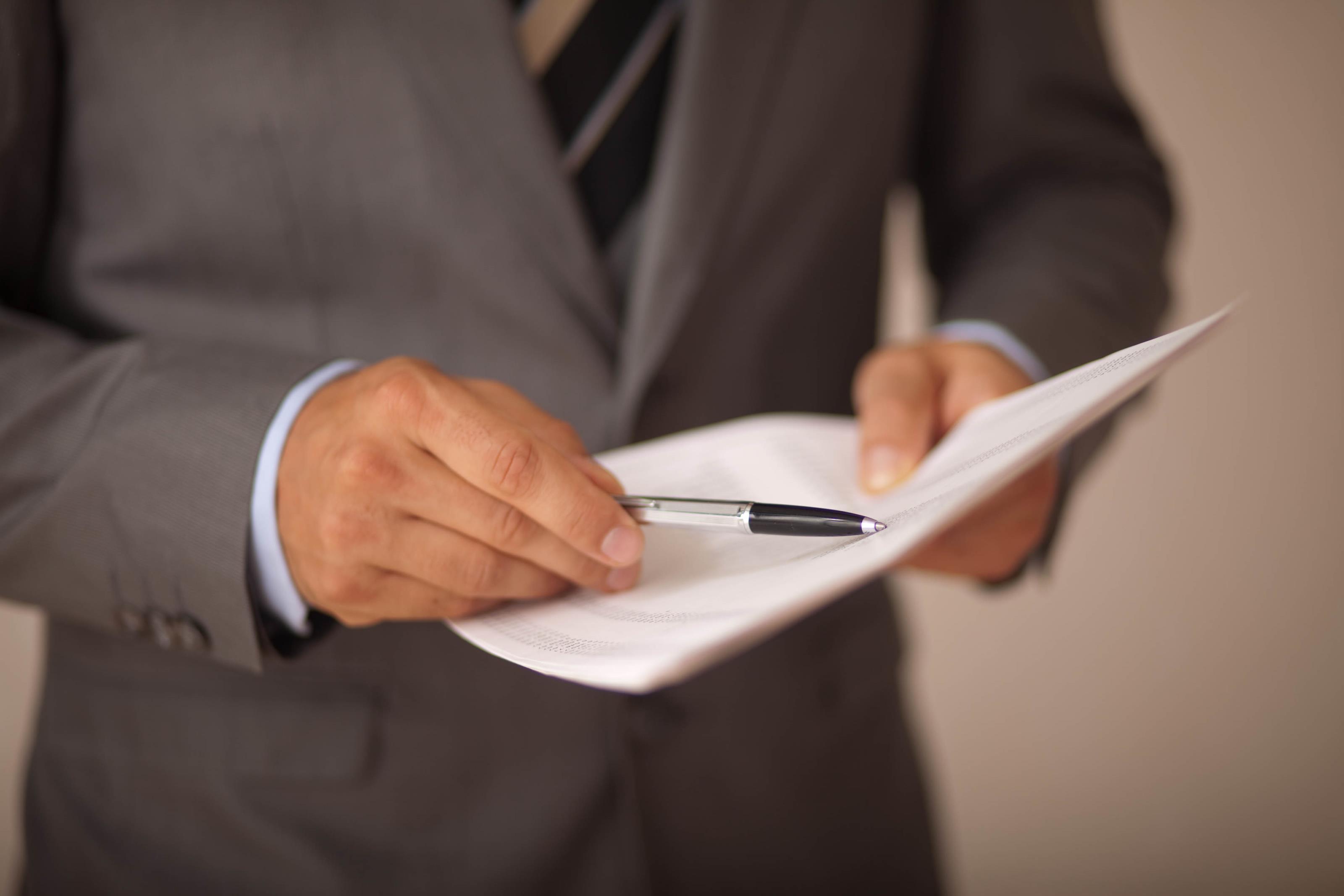 En man håller fram ett avtal eller en bunt med papper. Sökord: affärsman arbetare avtal business businessman chef företagare kostym lista man papper rapport säljare vd