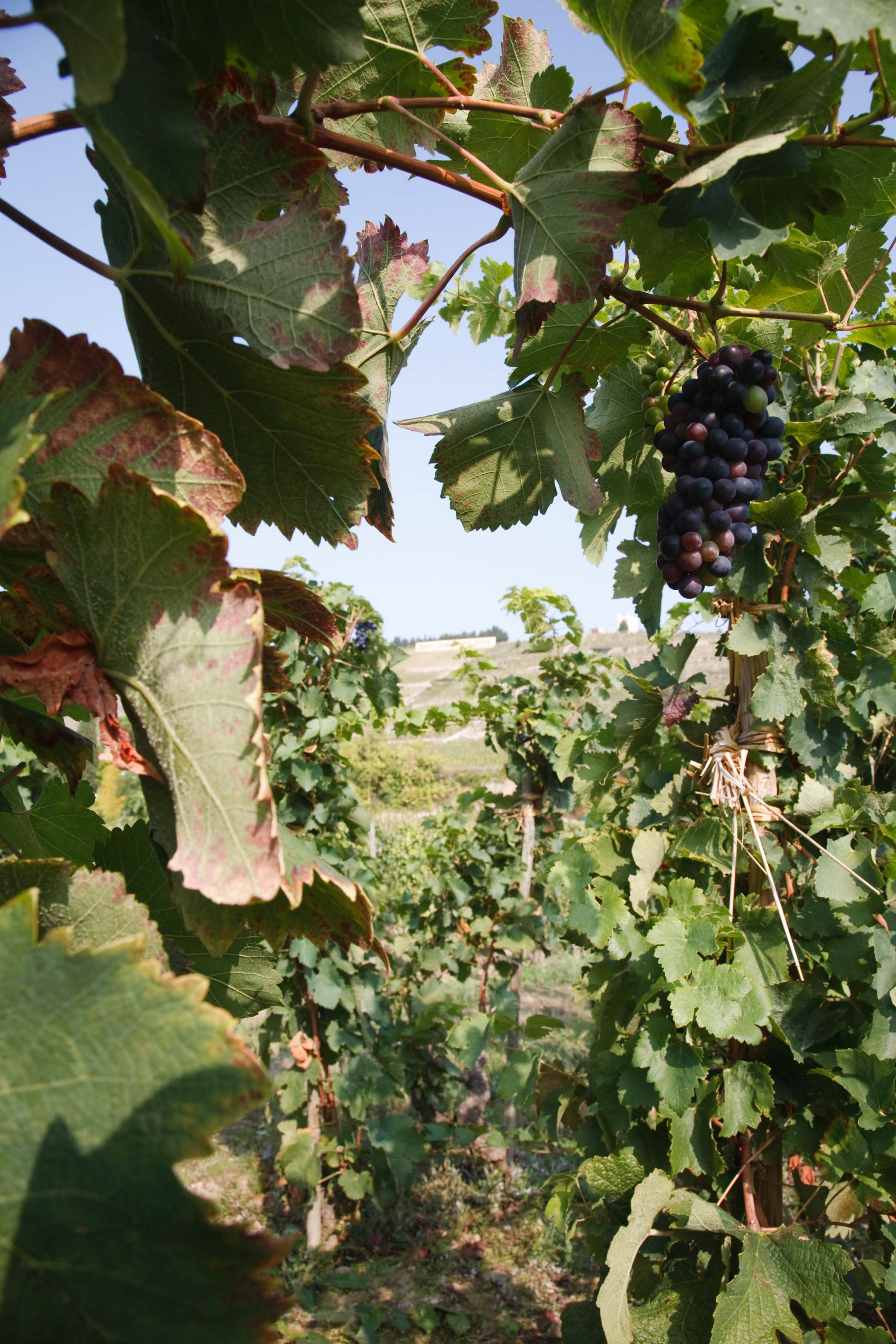 Vinrankorna är skördade för i år. På detta foto kan associeras till: frankrike, frukt, hermitage, skördat, vin, vindruvor, vinodlingar, vinordling, vinrankor, .