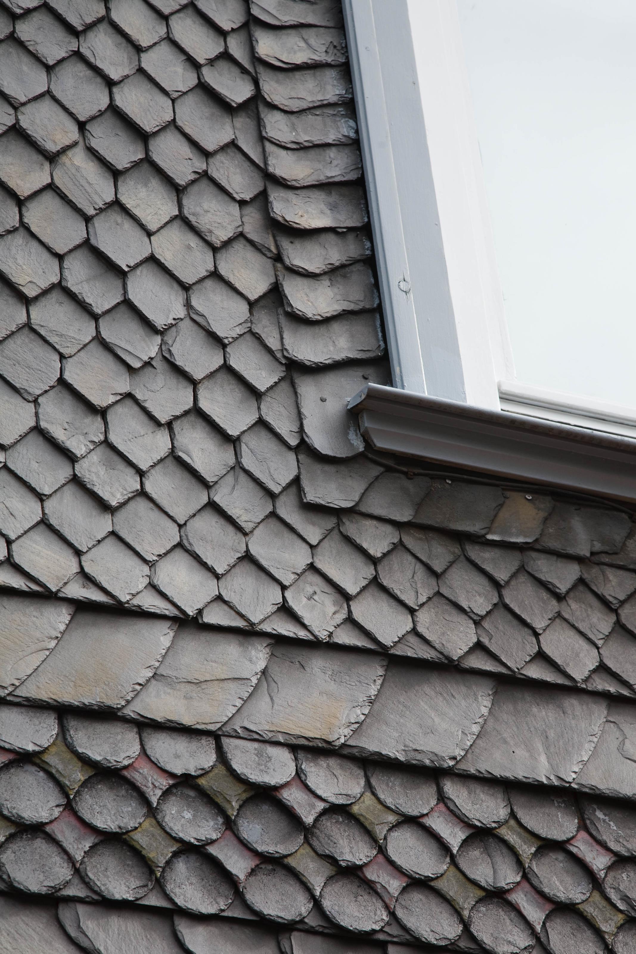 Fasad av skiffer. På detta foto kan associeras till: beläggning, bergart, fasad, fasadbeläggning, goslar, skiffer, tyskland, .