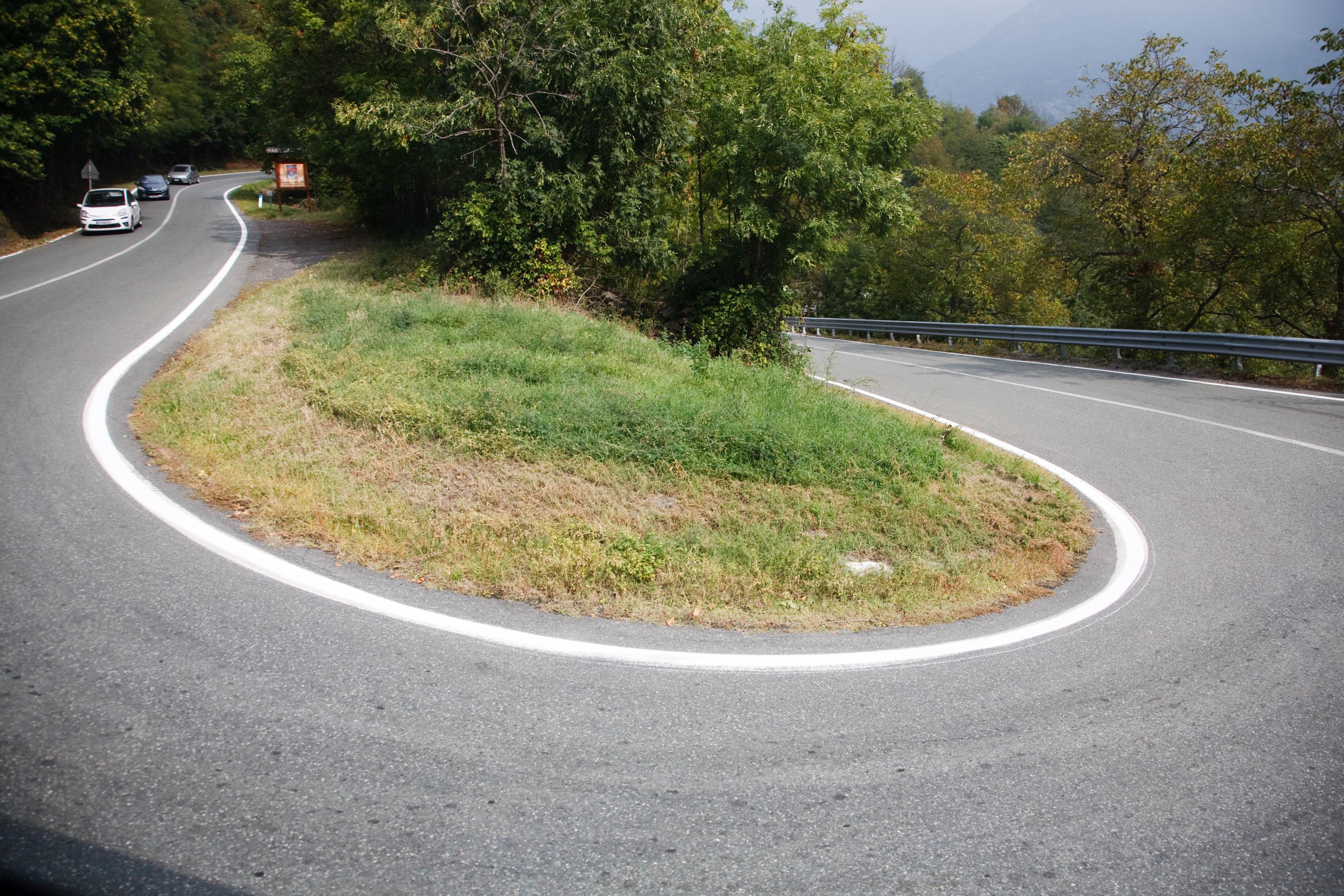 Snäva svängar i serpentinvägarna i Alperna. På detta foto kan associeras till: alper, alperna, berg, italien, serpentinväg, snäva, snävt, sväng, svängar, .