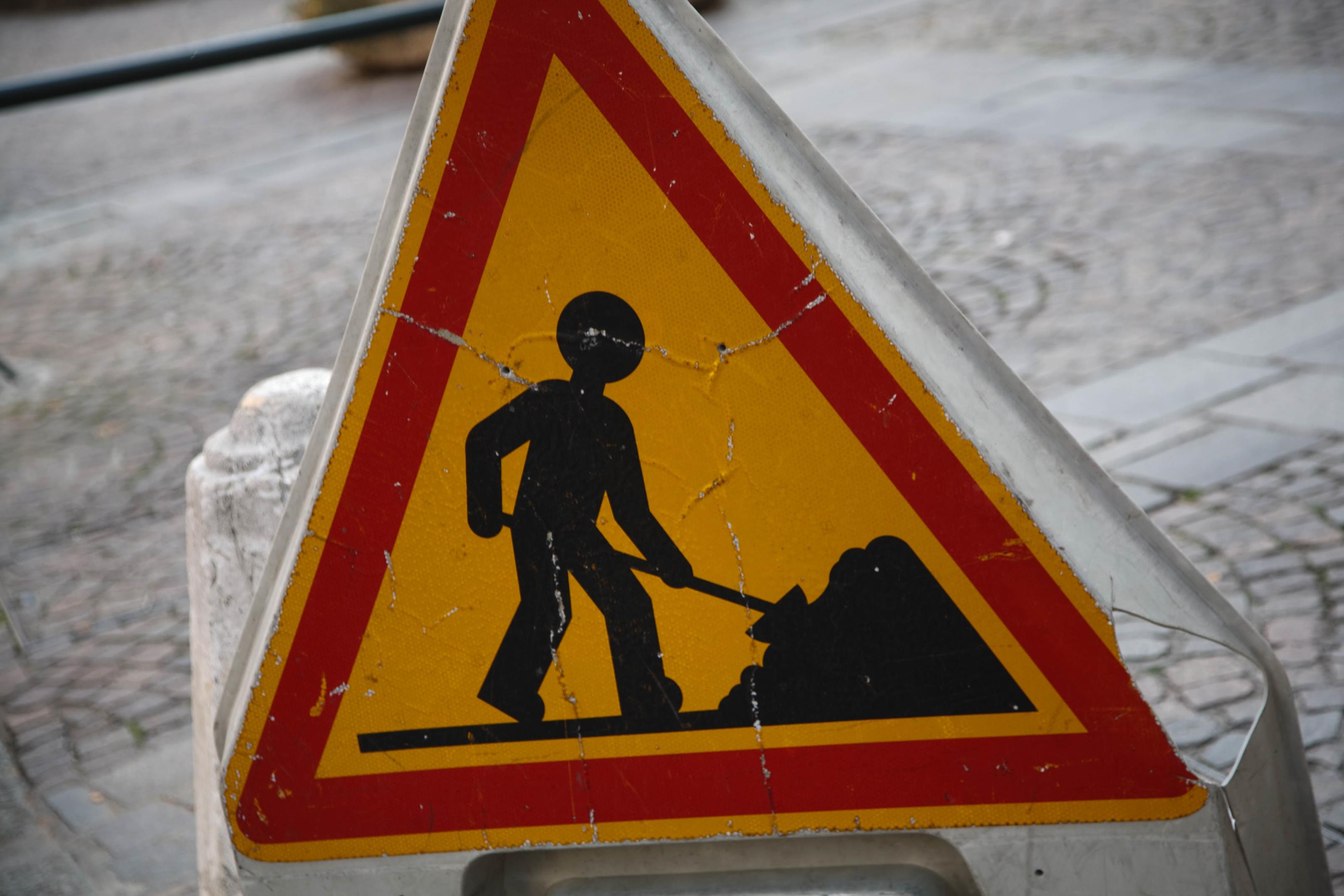Skylt som varnar om vägarbete.Sökord: annecyfrankrike Storleken på denna bild är 3200 x 2134 pixlar. Denna bild har mycket hög upplösning. Detta ger en bild på 27 x 18 cm med 300 dpi. Bildens id är 7444, anges vid beställning.