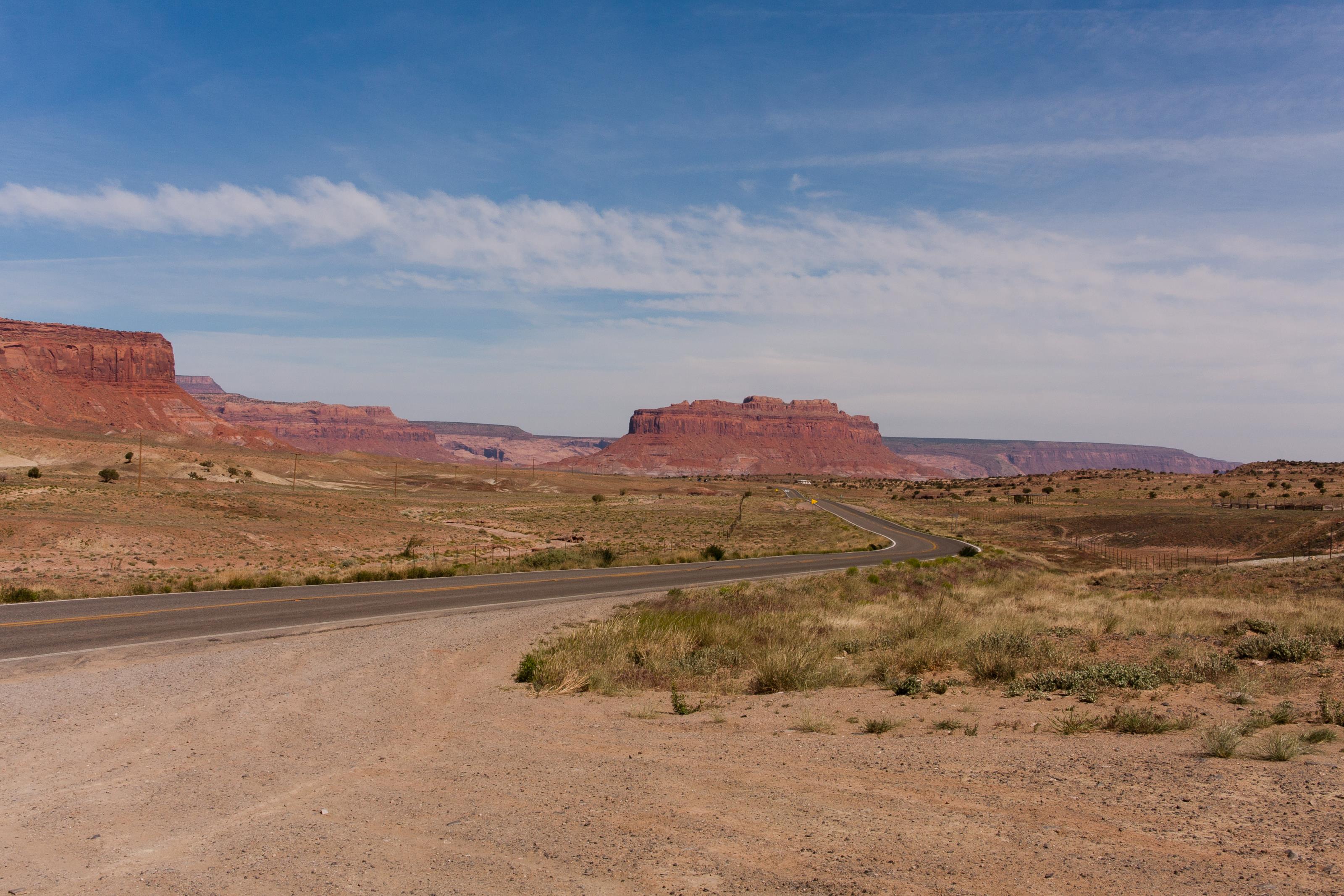 Väg i ökenmark i Utah, USA. På detta foto kan associeras till: arizona, berg, bergsformation, monument, valley, usa, utah, västernfilm, öken, ökenlandskap, .