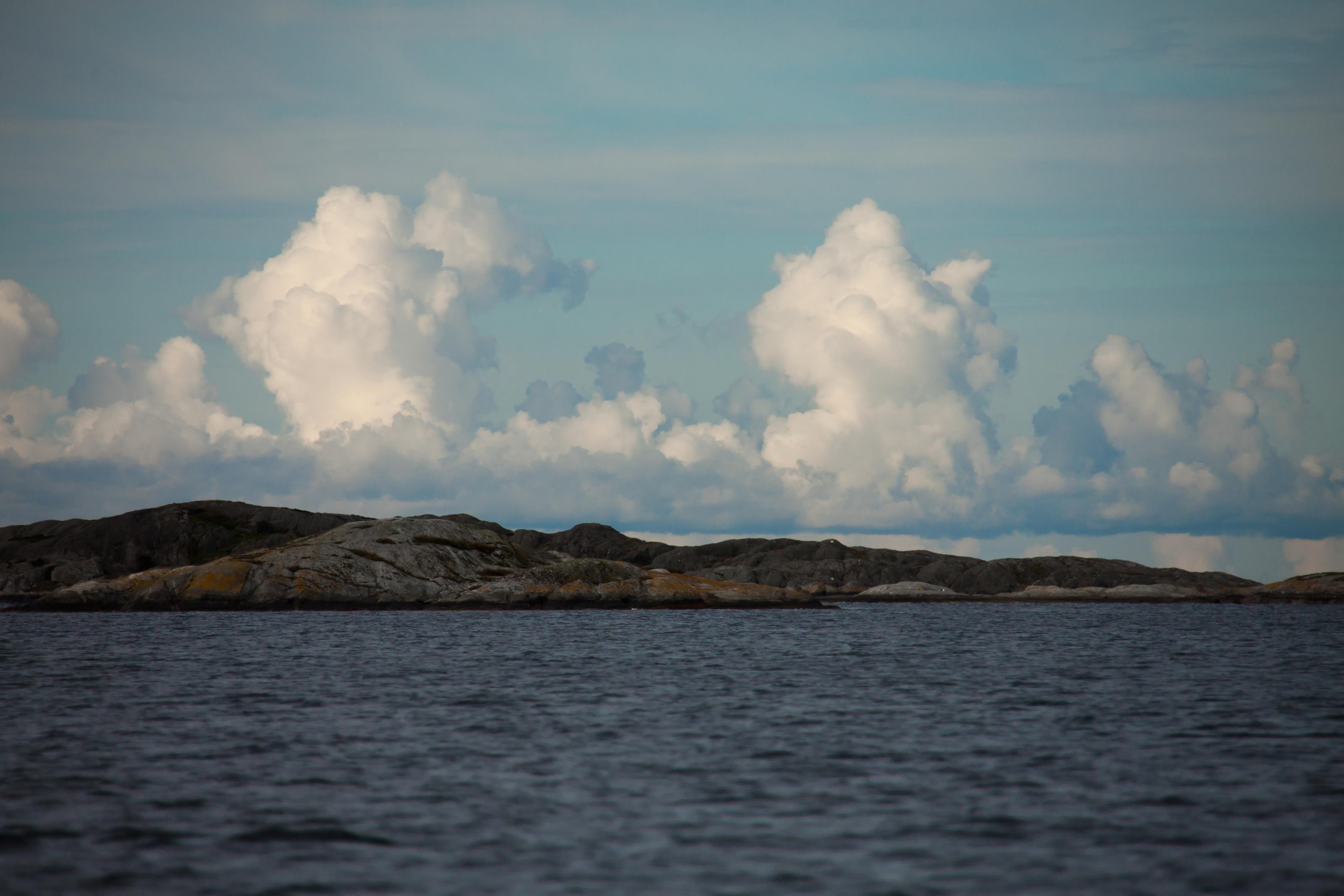 Moln som växer på höjden. På detta foto kan associeras till: berg, hav, havet, klippor, moln, vatten, västkusten, .
