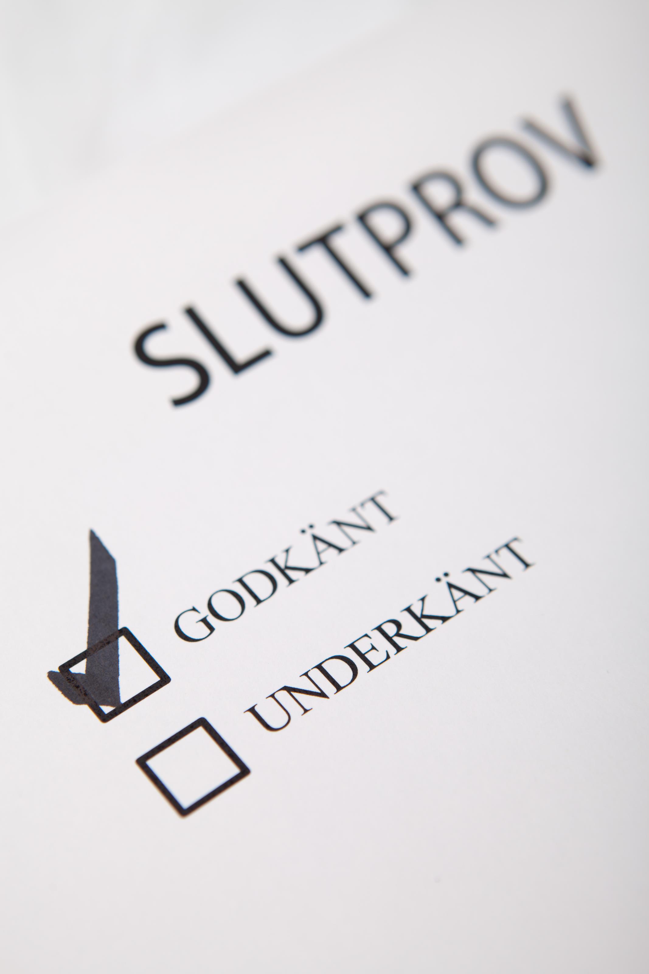 Protokoll på att slutprovet är godkänt. På detta foto kan associeras till: bedömma, bedömning, bra, godkänd, godkänna, godkänt, kontroll, ok, prov, slutprov, test, utredning, .