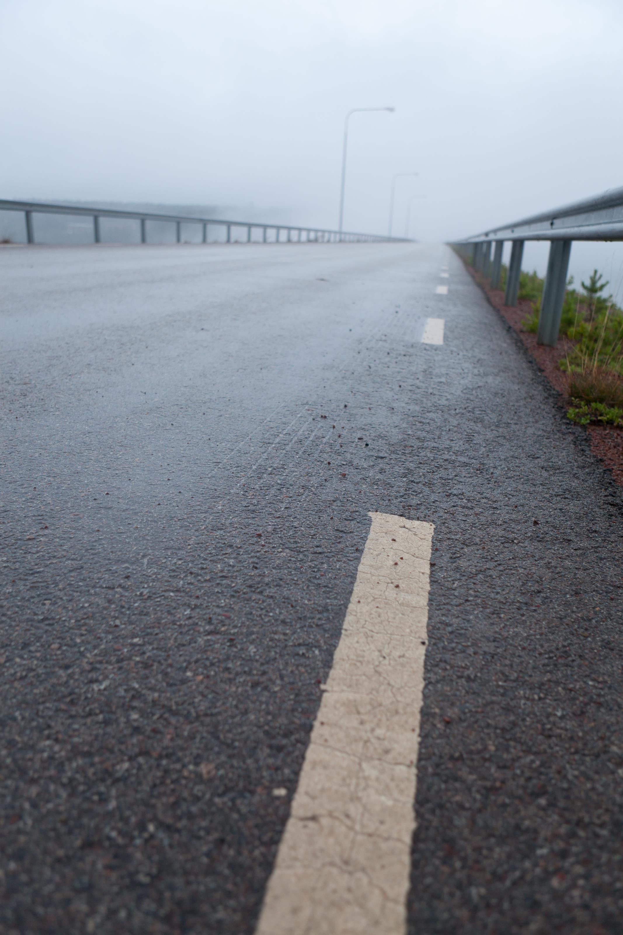 En väg som är täckt av dimma. På detta foto kan associeras till: bro, dalarna, räcke, trafikmiljö, väg, vägräcke, älvdalen, .