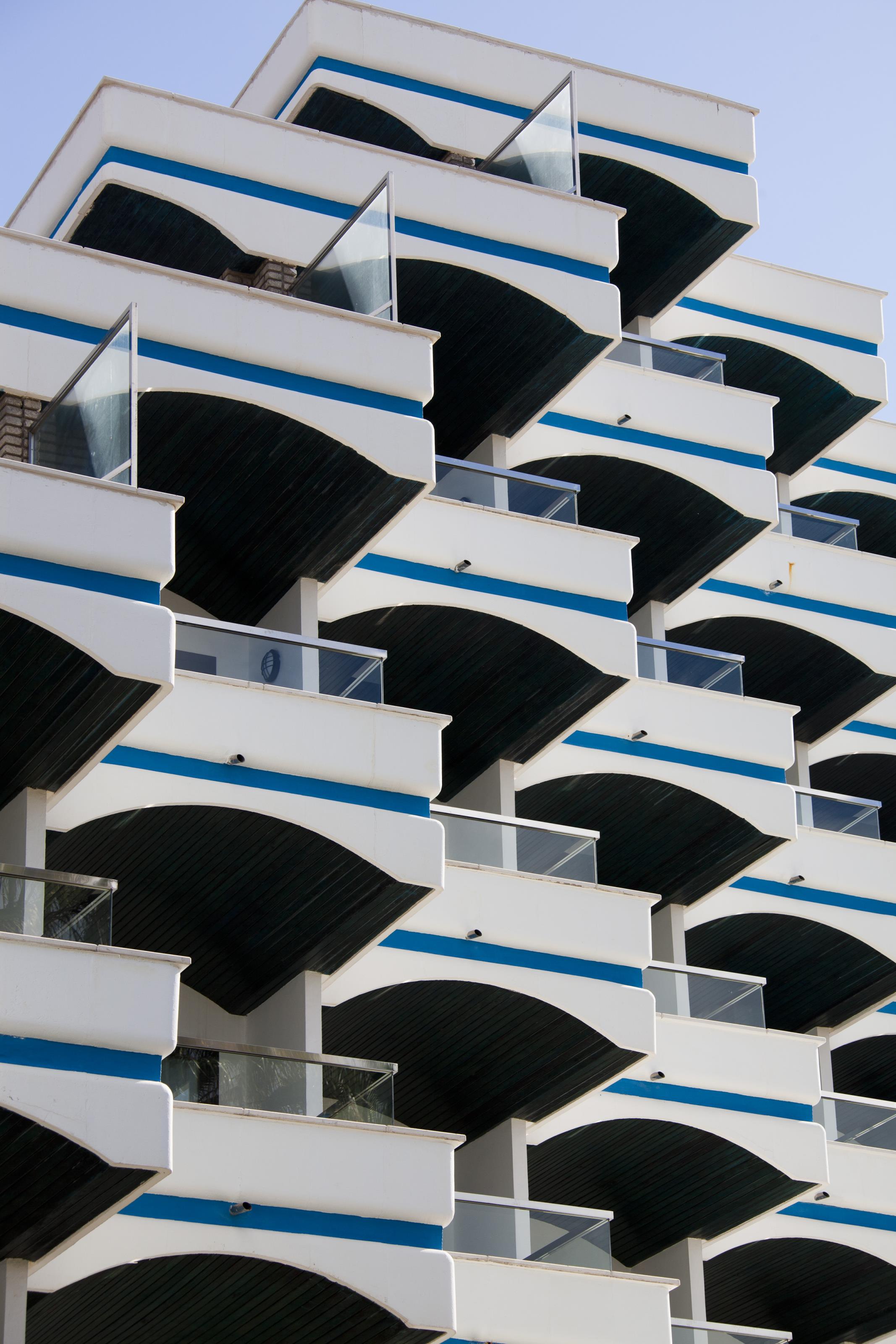 Vita balkonger på Gran Canaria. På detta foto kan associeras till: balkong, balkonger, gran, canaria, kanarieöarna, maspalomas, mönster, spanien, .