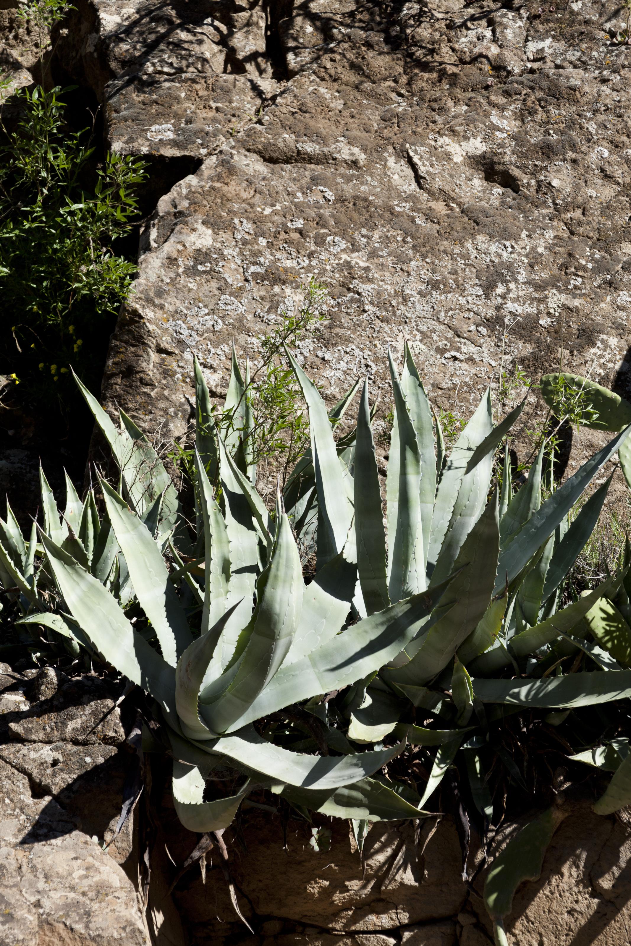 Vilt växande Agave, med sina långa taggiga blad. På detta foto kan associeras till: agave, agavesirap, agaveväxter, barranco, de, guayadeque, gran, canaria, hundraårig, aloe, ingenio, kanarieöarna, spanien, .