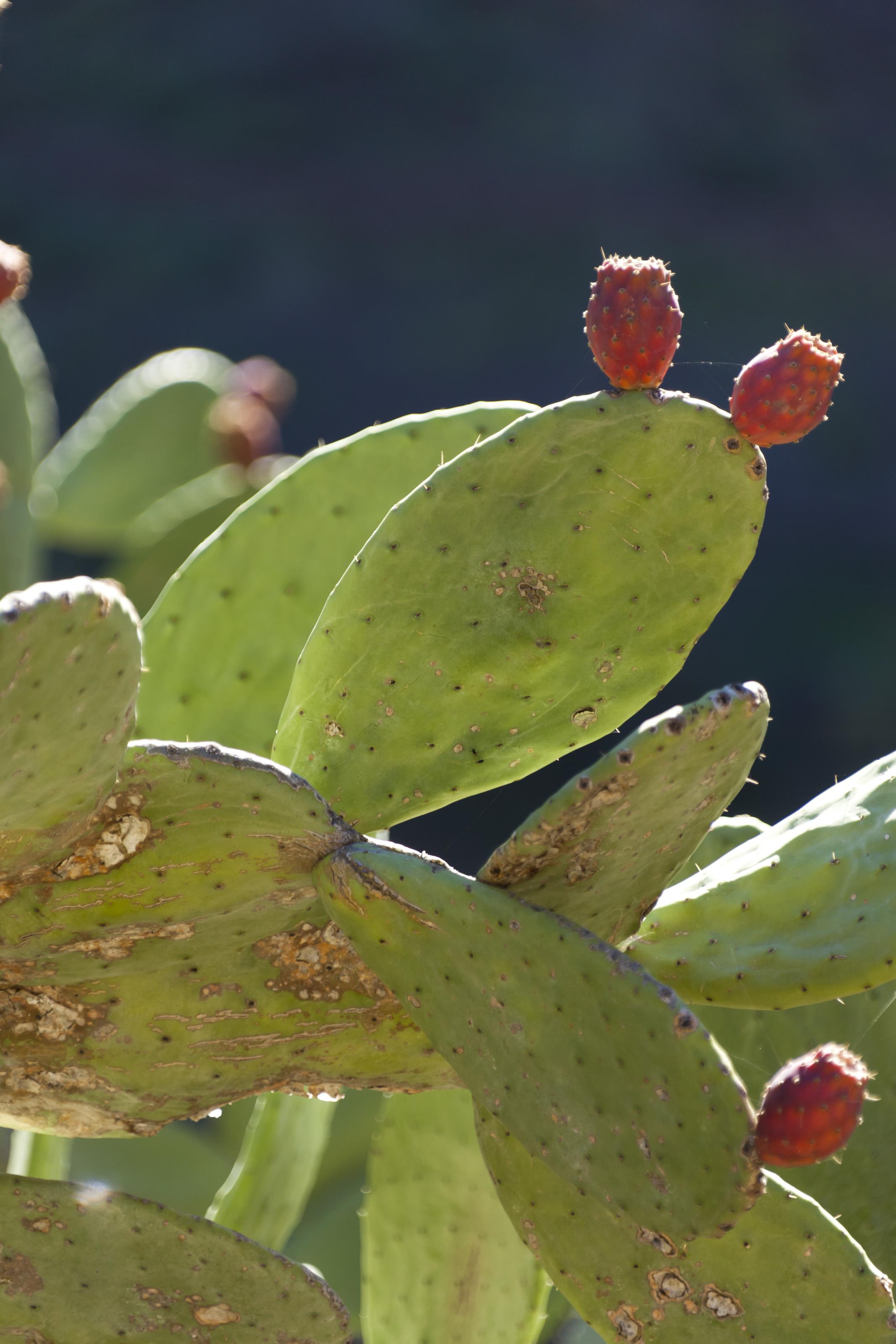 Fikonkaktus med röda frukter. På detta foto kan associeras till: barranco, de, guayadeque, fikonkaktus, gran, canaria, ingenio, kaktus, kaktusar, kaktusfikon, kaktusväxter, kanarieöarna, spanien, växter, .