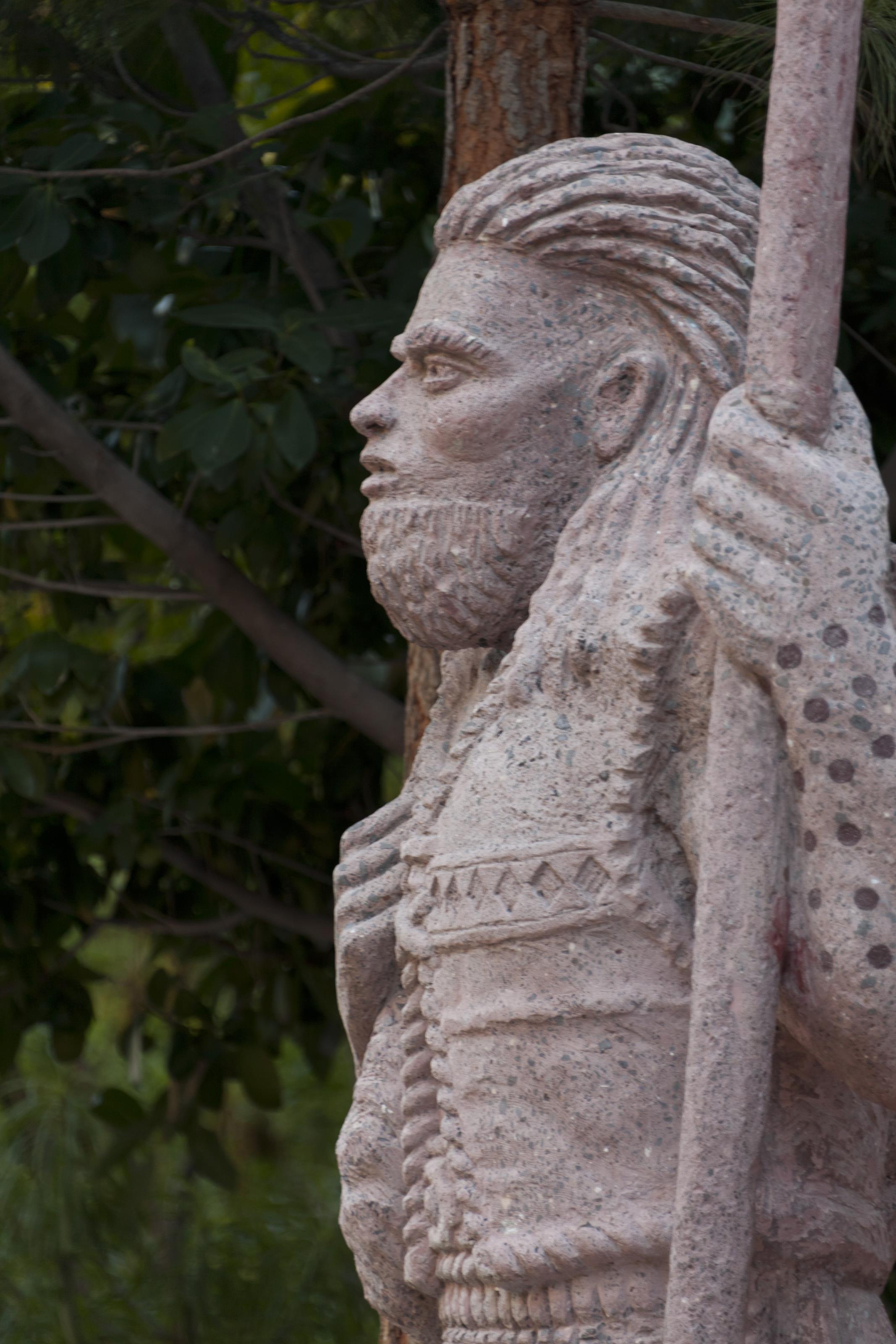 Stenstatyer föreställande guancher. Sökord: barranco de guayadeque by gran canaria grottby grottfolk guancher guancherna ingenio kanarieöarna monument roque spanien staty statyer
