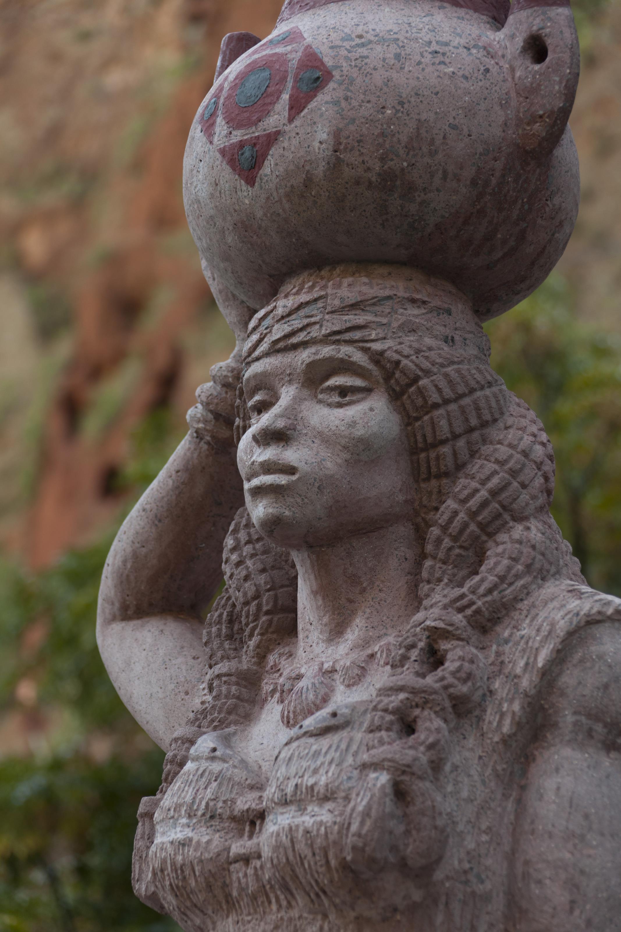Stenstatyer föreställande guancher. Sökord: barranco de guayadeque by gran canaria grottby grottfolk guancher guancherna ingenio kanarieöarna monument roque spanien staty statyer