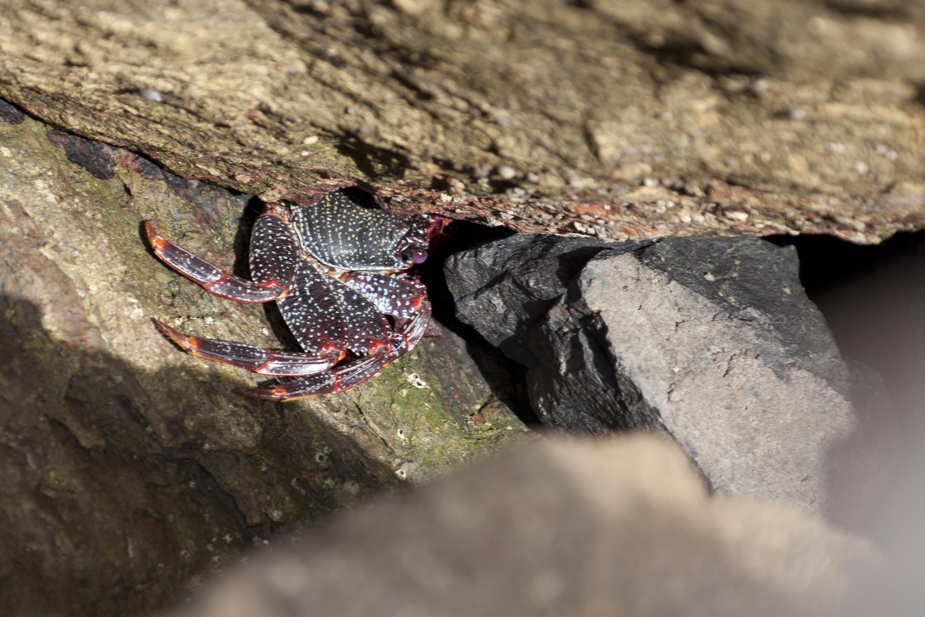 Sally lightfoot eller grapsus grapsus som den röd kvicka krabban heter. På detta foto kan associeras till: djur, gran, canaria, hav, havet, kanarieöarna, krabba, krabbor, kust, skaldjur, spanien, .