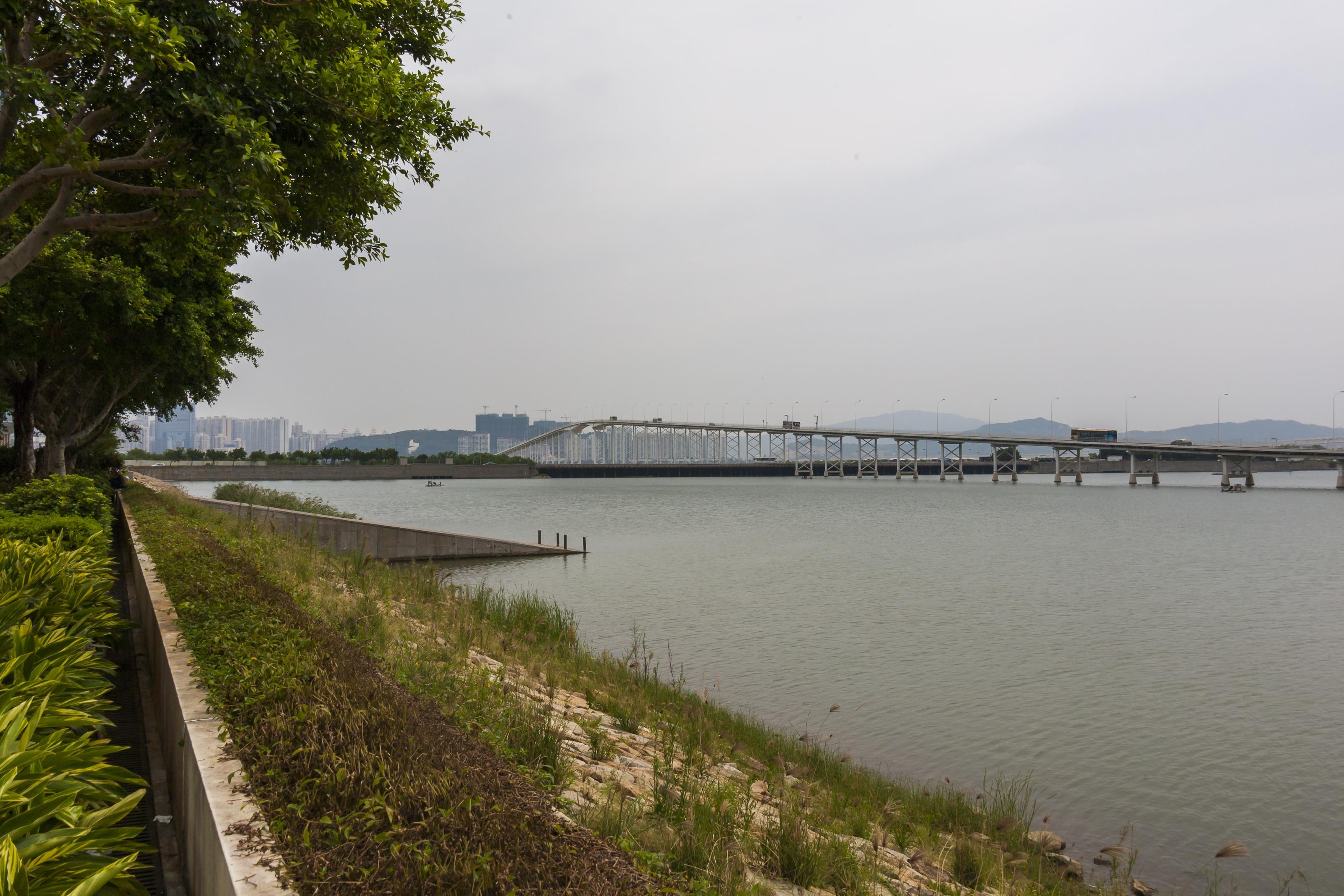 Bro mellan Macao och Taipa i Kina På detta foto kan associeras till: asien, kina, macao, macao-taipa-bron, macau, macau-taipa-bron, nya macau-taipa-bron, taipa.