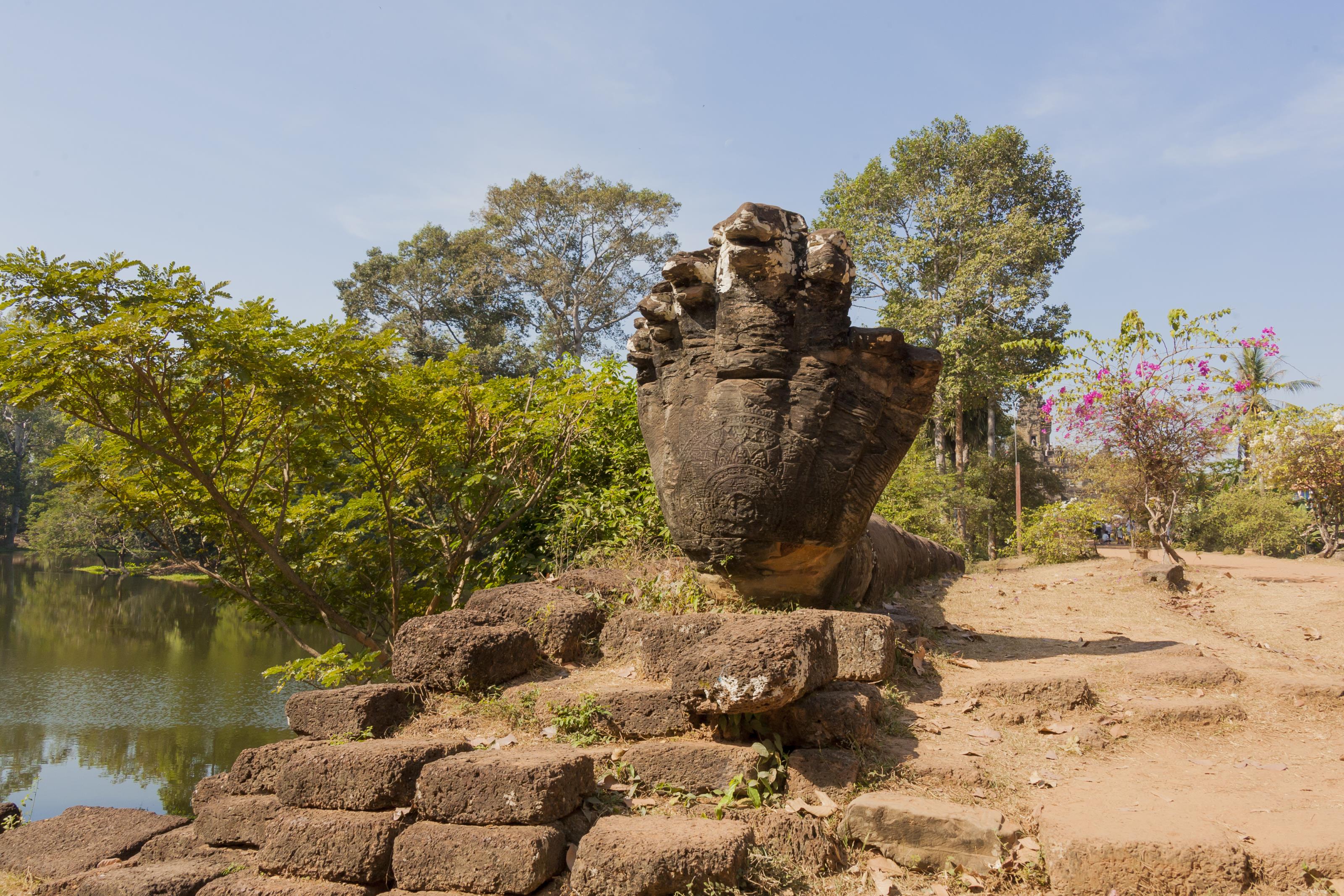 Naga vid Templet Lolei i Angkor, Kambodja. På detta foto kan associeras till: Lolei, angkor, asien, byggnad, byggnader, flerhuvad orm, hinduism, hinduistiskt, kambodja, naga, orm, resa, ruin, ruiner, ruinstad, sydostasien, tempel, turistmål.